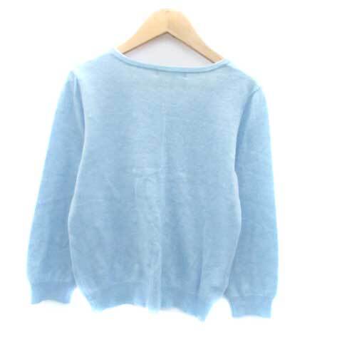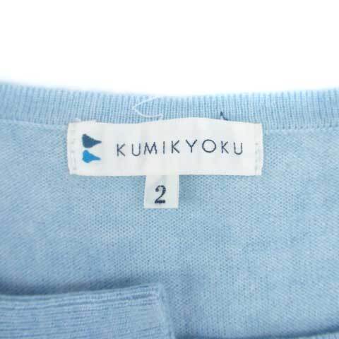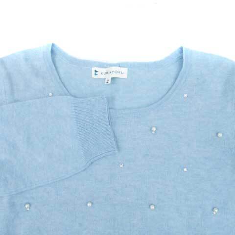 クミキョク 組曲 ニット セーター ラウンドネック 七分袖 フェイクパール ラインストーン ウール混 2 M 水色 ライトブルー レディース