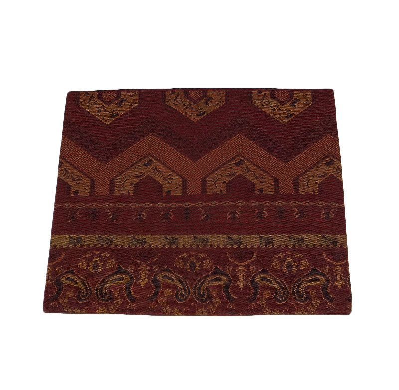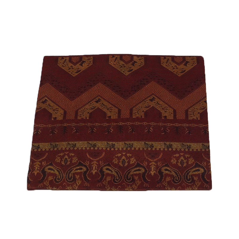 赤茶・茶色濃淡の地色にペイズリー・亀甲や古典模様が織り込まれています。