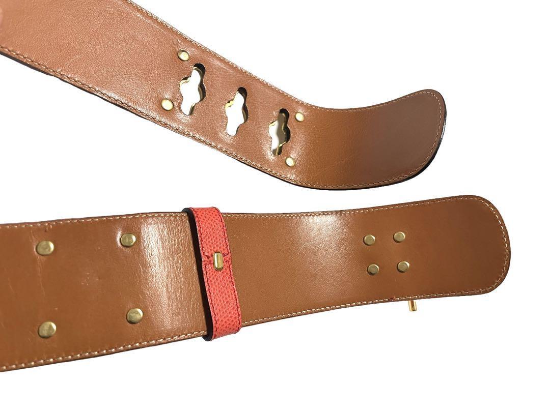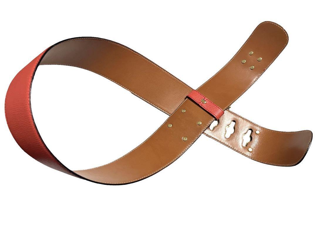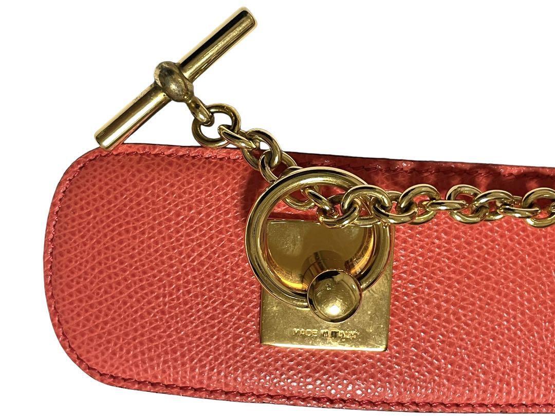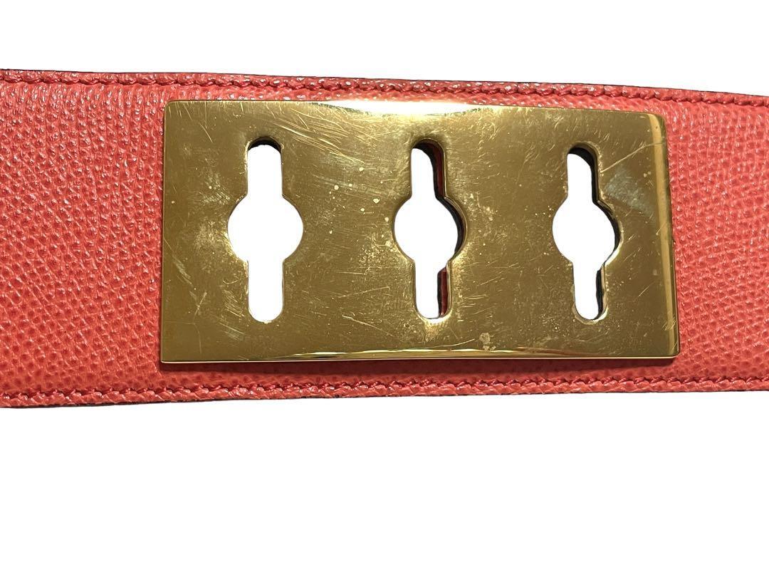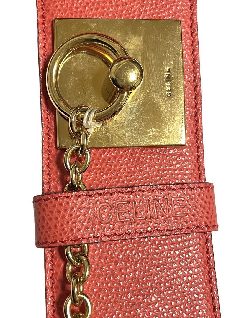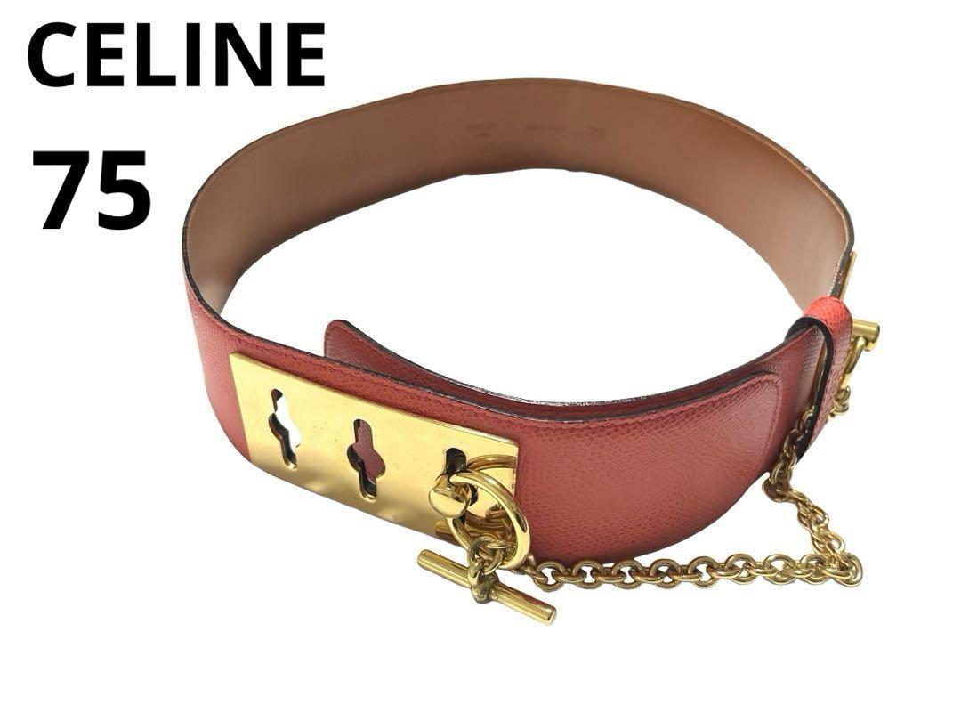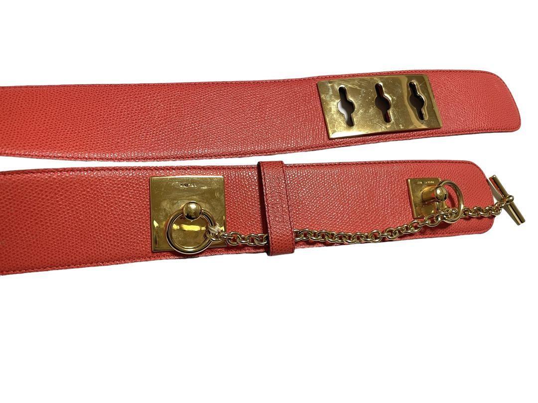 CELINE セリーヌ 75 ベルト 金具 ウエストマーク チェーン付き レザー レッド×ゴールドレディース イタリア製 おしゃれ
