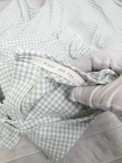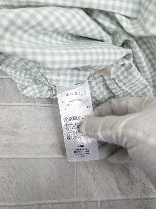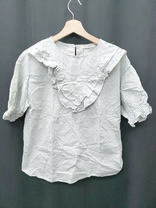 ◇ ⊂ ehka sopo エヘカソポ ギンガムチェック 半袖 ブラウス サイズF グリーン レディース P