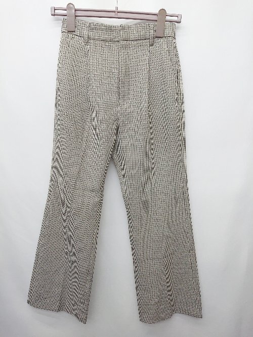 ◇ Θ LOWRYS FARM 千鳥格子 タック フレア パンツ サイズM ベージュ レディース P