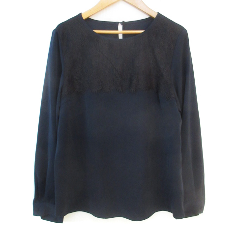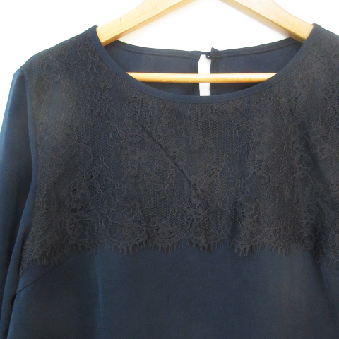 ロペピクニック ROPE Picnic ブラウス カットソー 長袖 ラウンドネック レース 38 M 紺 ネイビー /FF24 レディース