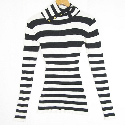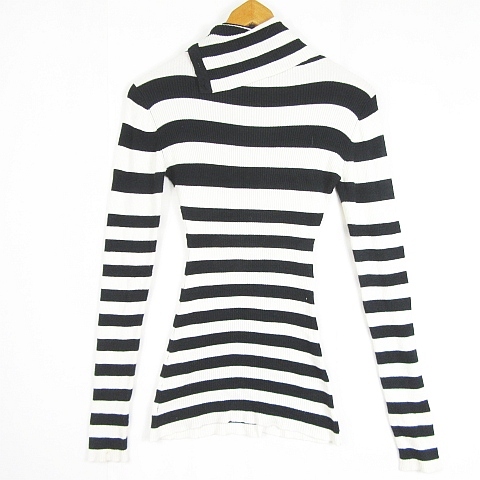 エゴイスト EGOIST リブニット カットソー タートルネック 長袖 ストレッチ レーヨン ブラック ホワイト ボーダー kz9900 レディース