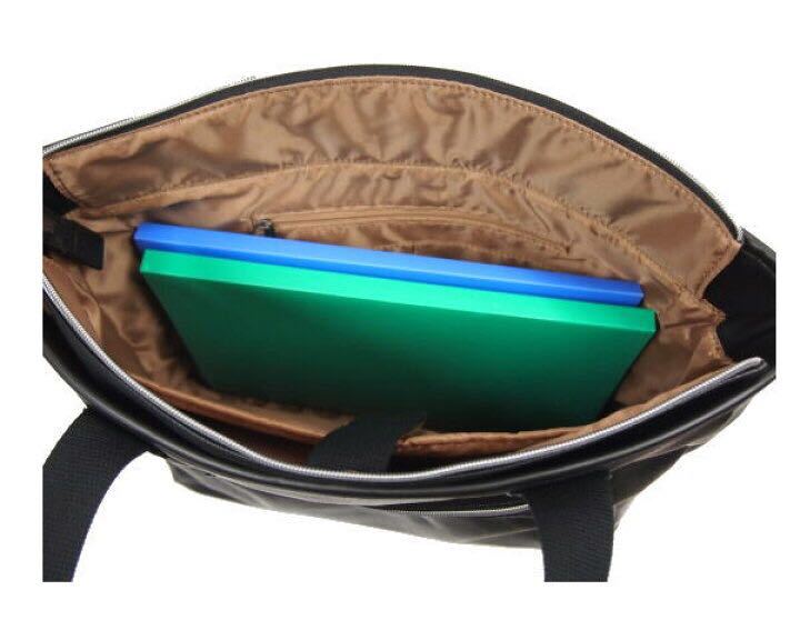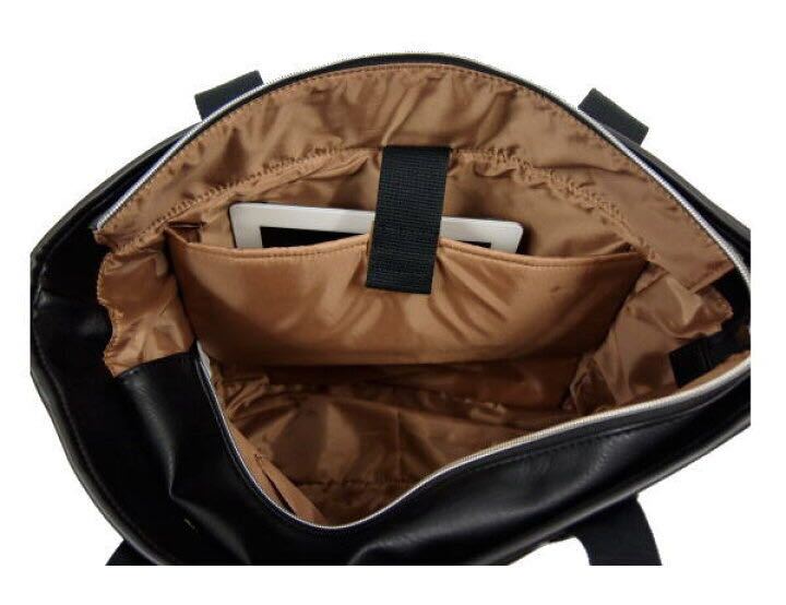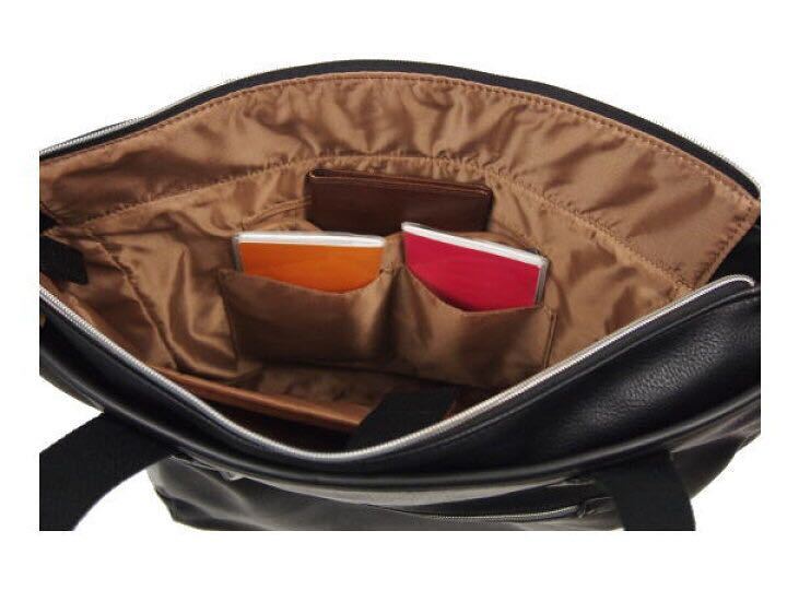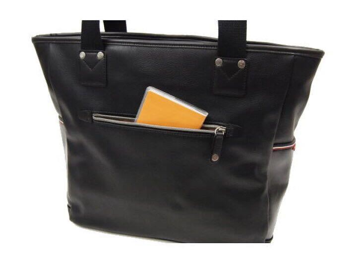 撥水性に優れたしなやかな合成皮革を使用しています。ちょっと大きめのトートバッグ、使用頻度の高いA4ファイルをラクラク収納可能です。