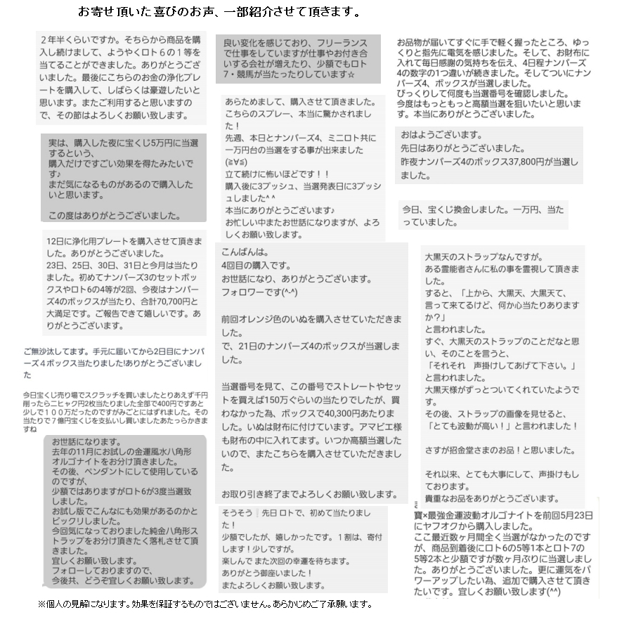 安心してご使用頂けるよう、原材料はすべて浄化してから作品製作を行い、作品は結界内に保管し、発送時にさらに浄化してからお送りしております。