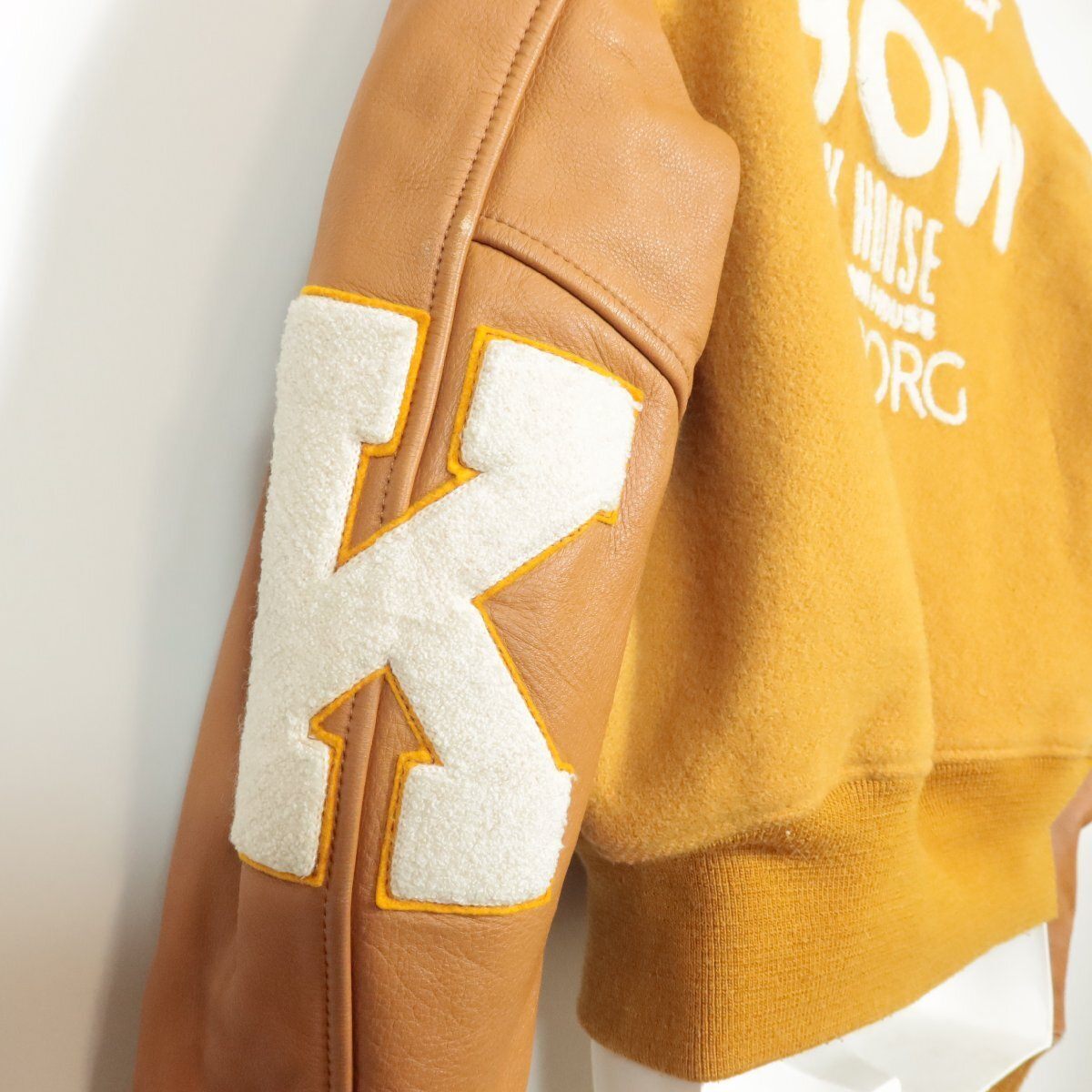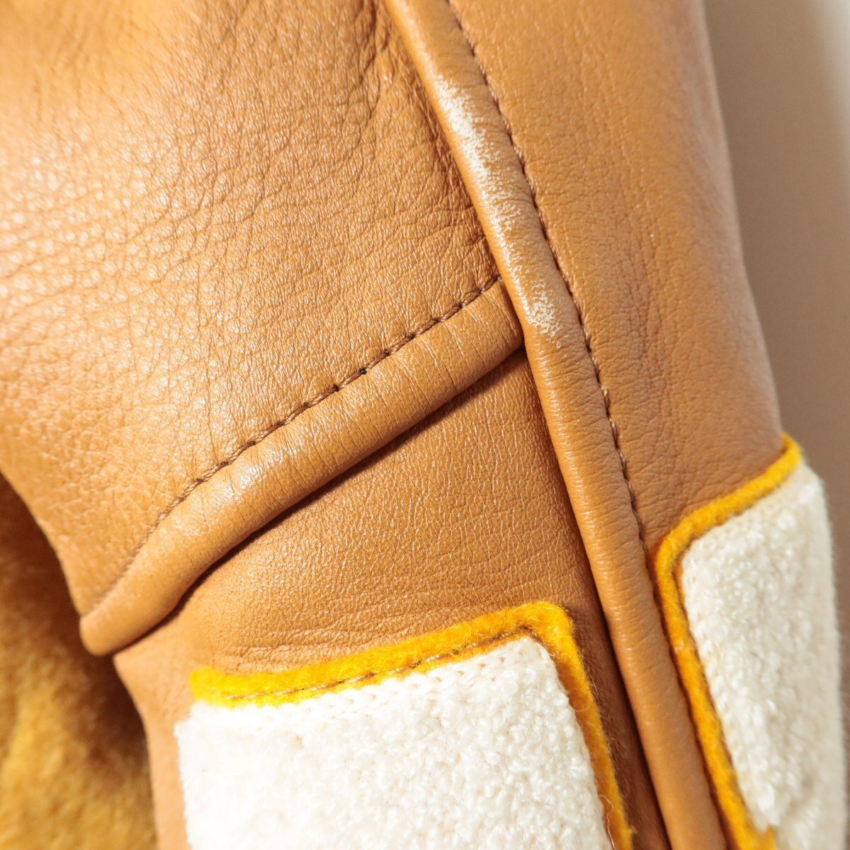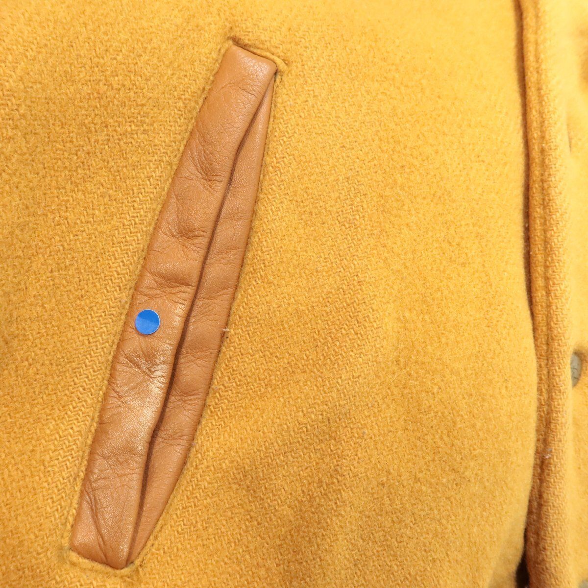 | 商品説明 | 【実寸約】肩幅53袖丈67胸囲116着丈61(cm) 【サイズ表記】 L 【素材】 本体:毛90ナイロン10 中綿:ポリエステル100% 袖:牛革 【状態】普通の使用感のあるお品物 右ポケットにスレあり 【デザイン】 イエローブラウン系 牛革&ウールの異素材ミックスがおしゃれなジャンパーです。 袖と背中のもこもこしたロゴが目を引きます。 フロントは上から下までスナップボタンで開くデザイン。 襟と袖口、裾リブニットです。 秋冬のコーデに大活躍するアイテム! |