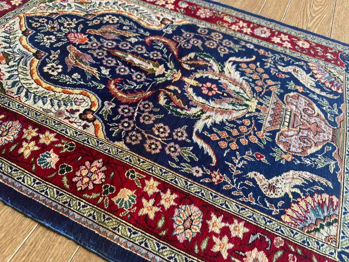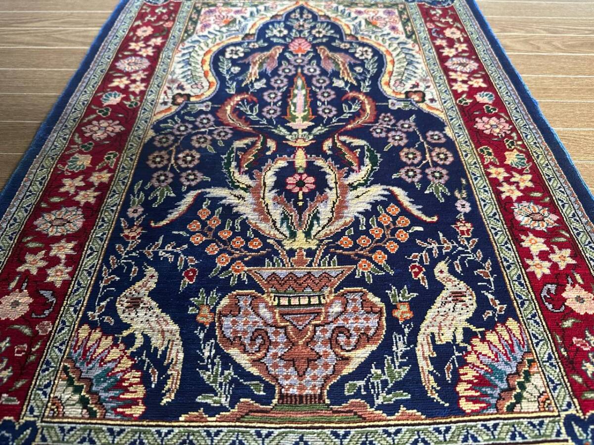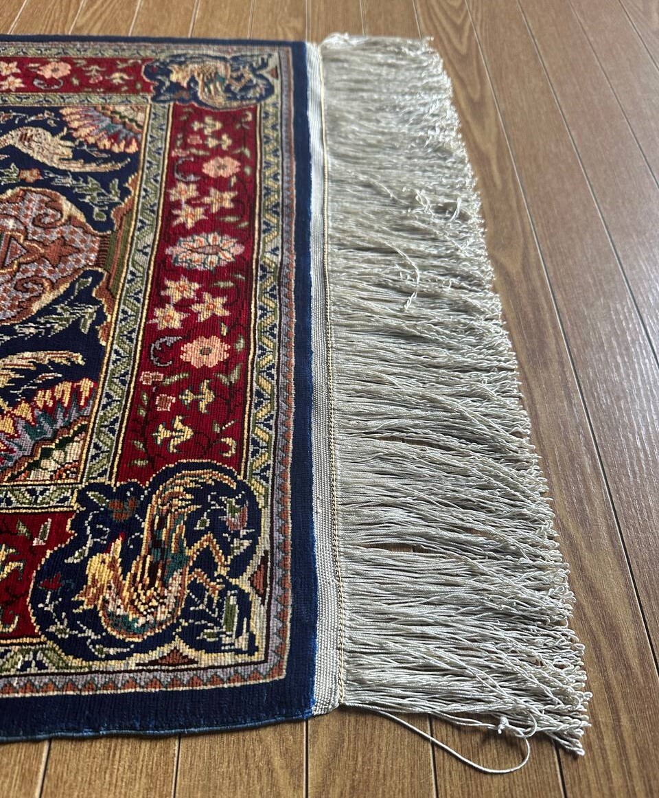 商品説明 | ★素材 : シルク・手織り ★サイズ : 約 79×52 cm (房を含まない長さです) ★厚み : 約 0.4 cm ★ノット数 : 8×8/1平方センチメートル ★産地 : トルコ・ヘレケ産 ★状態 : 中古品/クリーニング済み/美品 ※タペストリーとして飾られていたので、 踏まれておらず大変キレイな状態です。 裏側には、タペストリー時の輪が残っていますので 絨毯としてもタペストリーとしても使うことができます。 kkxpgs342+ZIBACARPET絨毯 kxpgs342+ZIBACARPET_Except_Persian_Carpet FARSHEZIBA_Except_Persian_Carpet_トルコTURKEY |