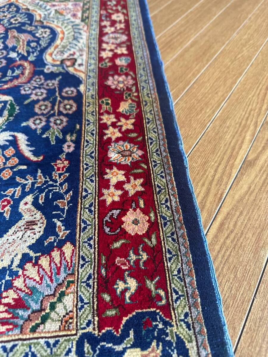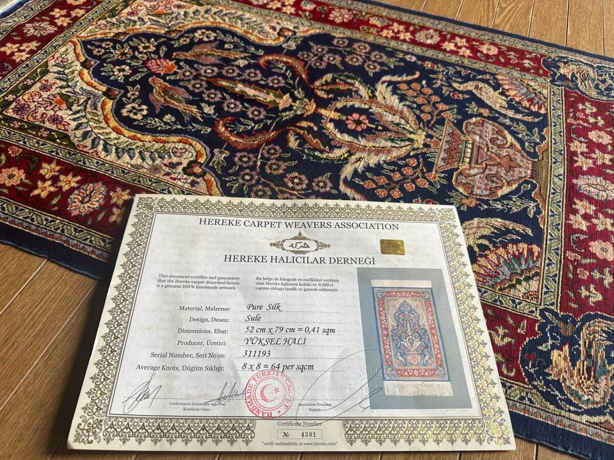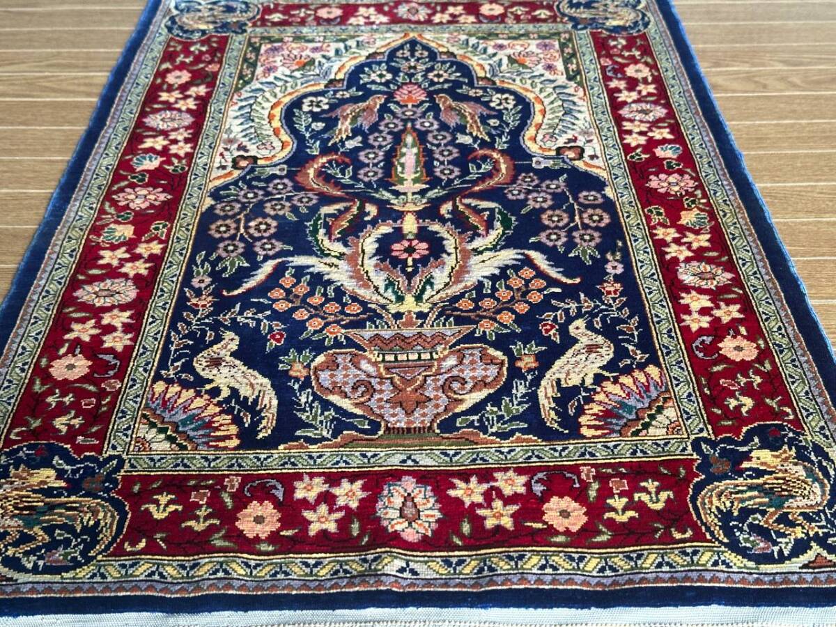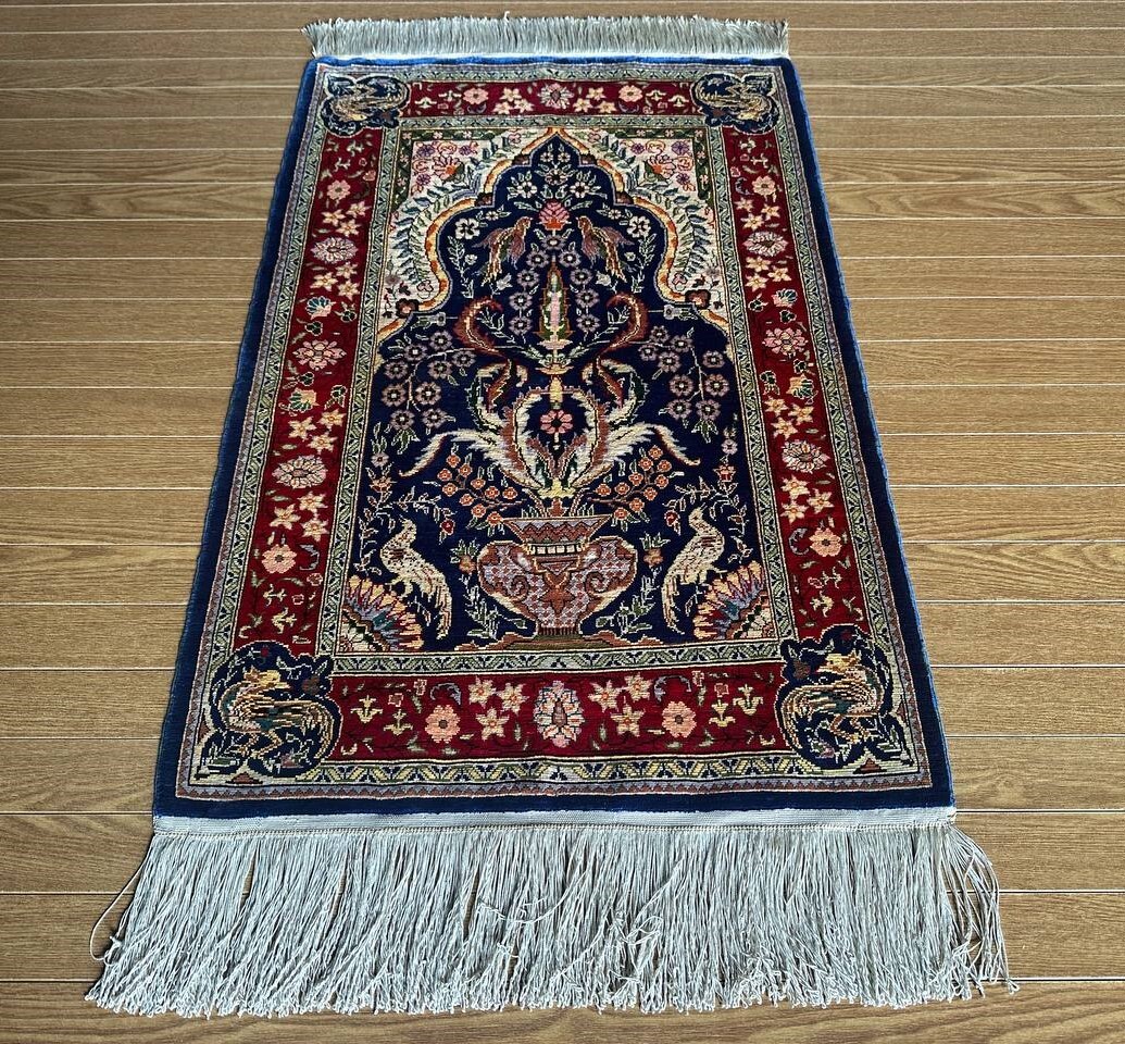 商品説明 | ★素材 : シルク・手織り ★サイズ : 約 79×52 cm (房を含まない長さです) ★厚み : 約 0.4 cm ★ノット数 : 8×8/1平方センチメートル ★産地 : トルコ・ヘレケ産 ★状態 : 中古品/クリーニング済み/美品 ※タペストリーとして飾られていたので、 踏まれておらず大変キレイな状態です。 裏側には、タペストリー時の輪が残っていますので 絨毯としてもタペストリーとしても使うことができます。 kkxpgs342+ZIBACARPET絨毯 kxpgs342+ZIBACARPET_Except_Persian_Carpet FARSHEZIBA_Except_Persian_Carpet_トルコTURKEY |