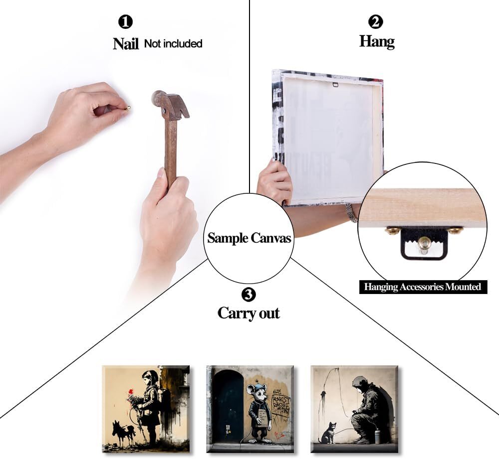取り付けも簡単で、あらかじめフックが付いているので、壁に釘を打つだけですぐに飾れます。