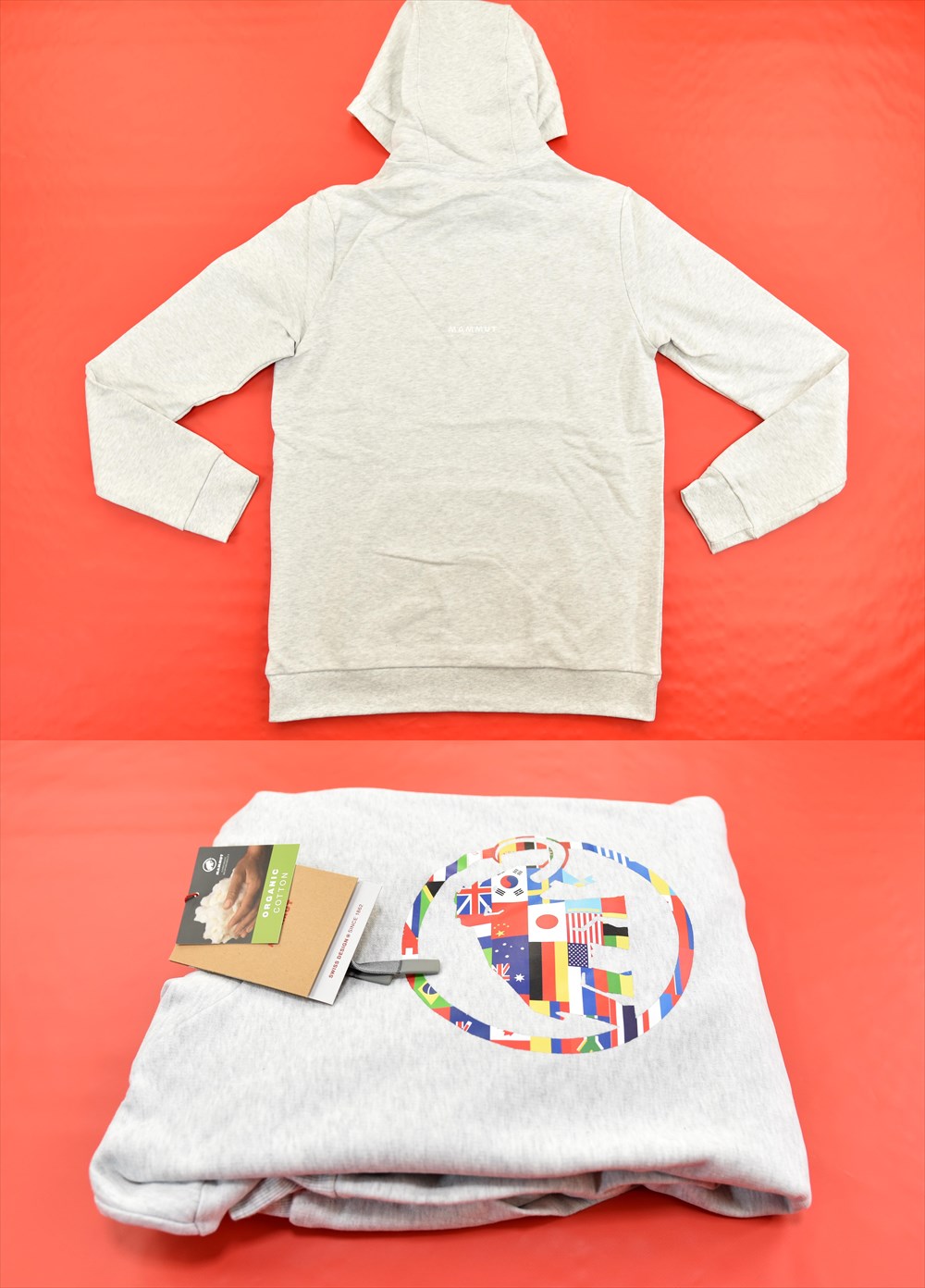 オリンピックに着想を得たプリントは、さまざまな国旗からなるマムートロゴが特徴。