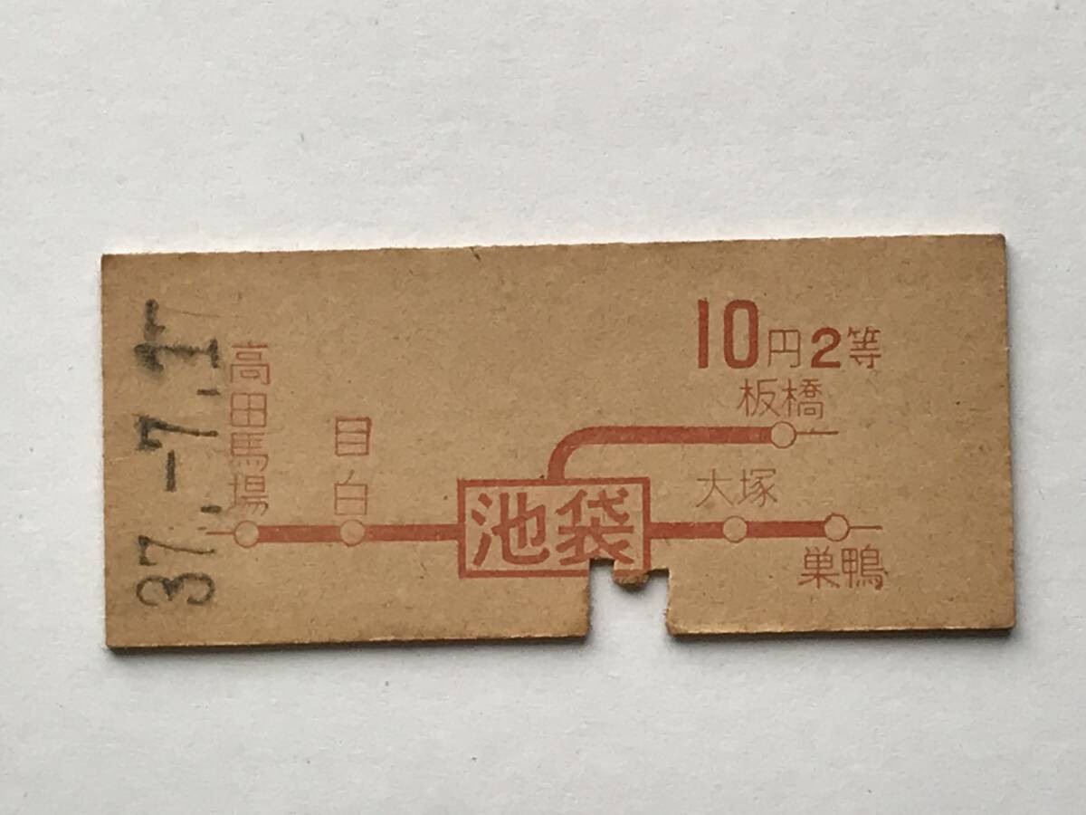 昔の切符 きっぷ 硬券 乗車券 池袋駅発行 池袋から10円2等 サイズ:約2.5×約5.8㎝ S37  HF5597   くるり岸田繁