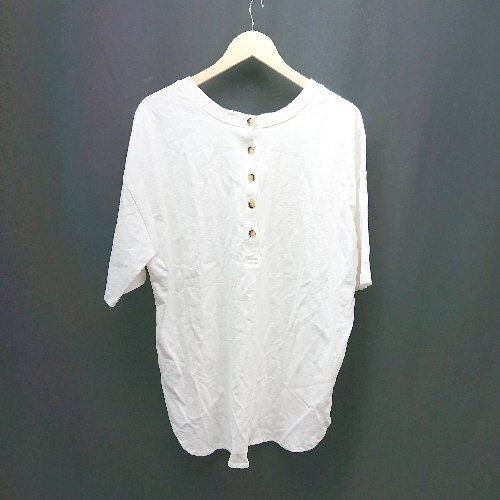 ◇ Java ジャバ テールカット ハーフボタン カジュアル 半袖 カットソー サイズL アイボリー レディース E