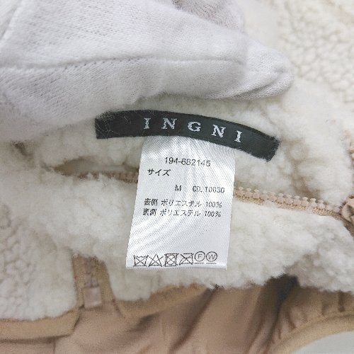 ■ ⊇ INGNI イング ハイネック ジップアップ 長袖 ボアブルゾン サイズM ホワイト ライトブラウン レディース E