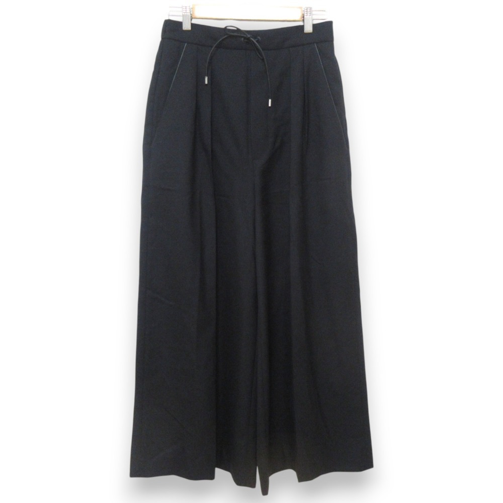 商品名:未使用 LOEWE ロエベ ウール100% レザーパイピング ドローストリング トラウザーズパンツ ワイドパンツ 36 ブラック