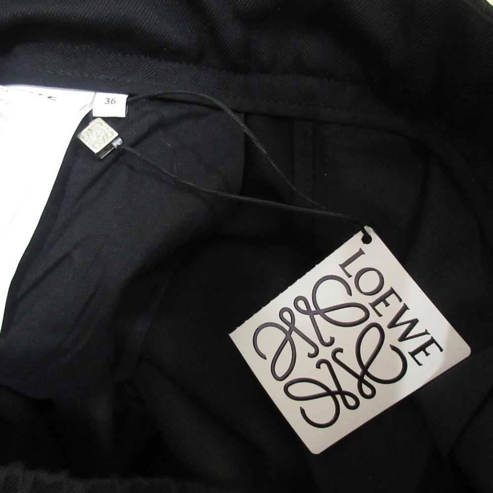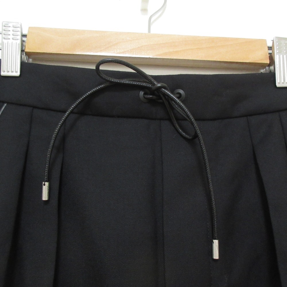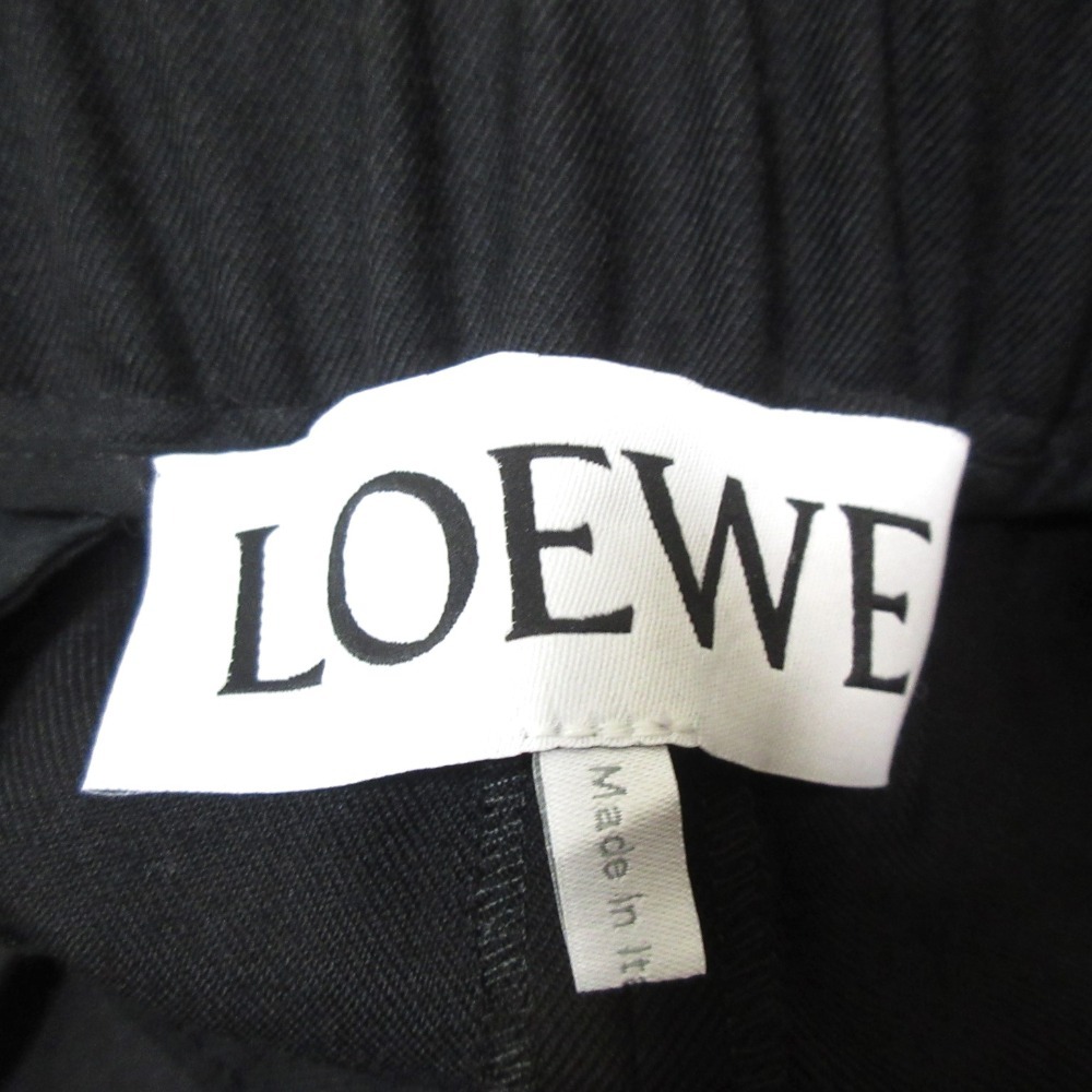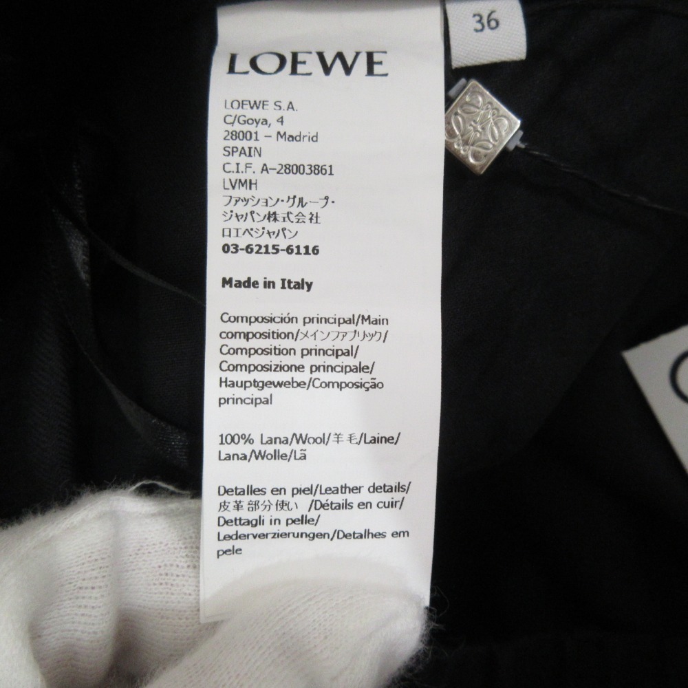 未使用 LOEWE ロエベ ウール100% レザーパイピング ドローストリング トラウザーズパンツ ワイドパンツ 36 ブラック