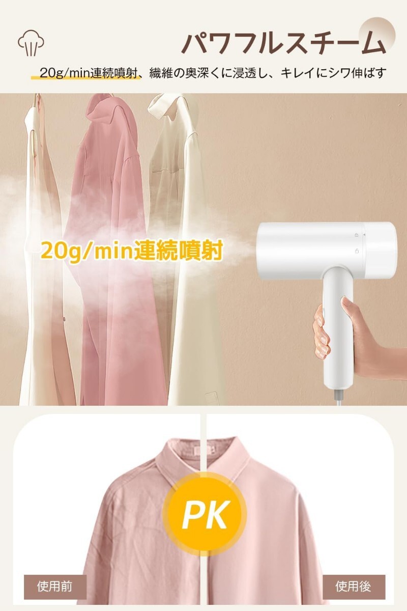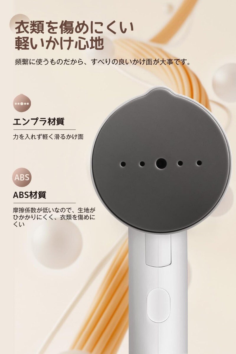 電源を入れてからスチ一ムを掛けられるようになるまで、わずか約25秒です。スチーム量は最大20g/minで、5つの穴から一気に噴射します。また、1000Wの強力パワーで、勢いよく噴射してスチームが繊維の奥までしっかり浸透し、キレイにシワ伸ばしながら型崩れを直してくれます。タンクはたっぷり容量115ml、一回の注水で最長8分間連続運転、途中注水の手間を省きます。早い立ち上がり、慌ただしい朝やお出かけ前も素早く身だしなみを時短で解決します。