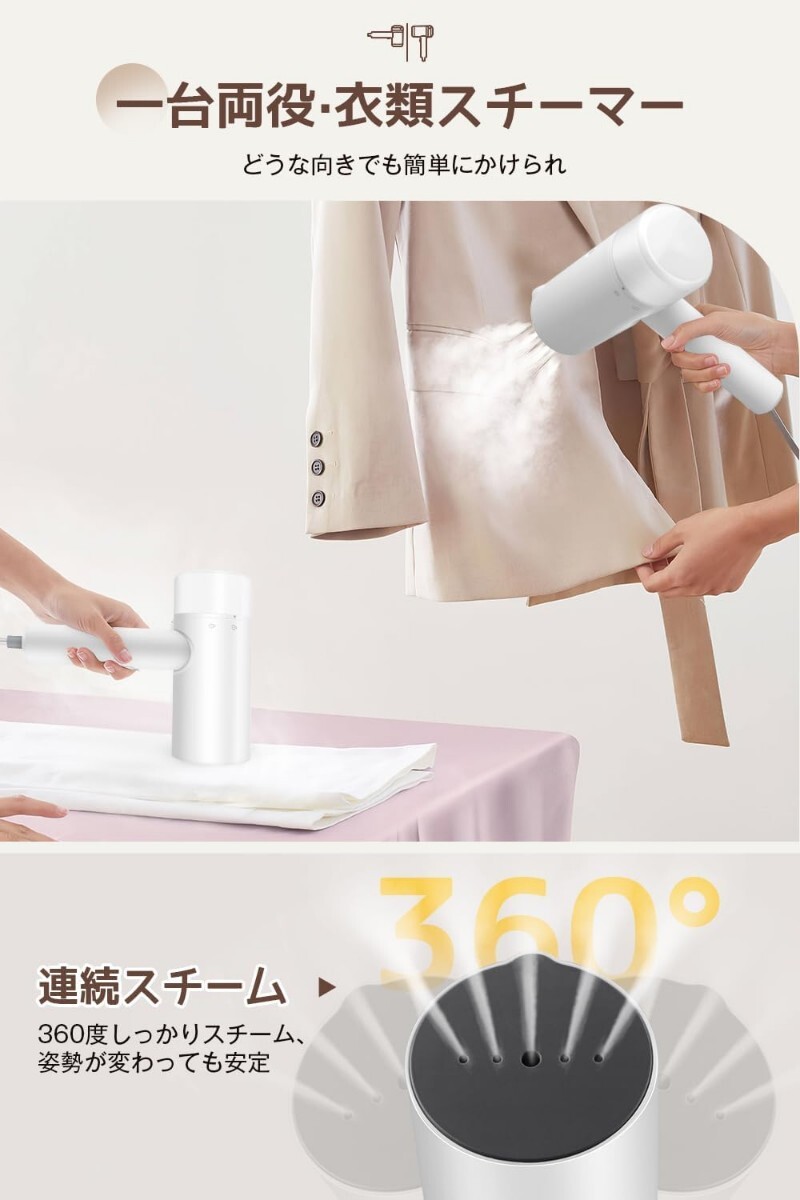 【アイロン&スチーマー・2way衣類ケア】 アイロン台いらず衣類をハンガーにかけたまま高温スチームを当ててサッとシワを伸ばし、衣類の形を整えます。また、衣類をアイロン台に置いて、普通のアイロンのように折り目などプレス仕上げも利用できます。ワンボダン操作で、初心者でも使いやすく、一回押すだけで連続スチームが出続けるので、使い心地も快適です。