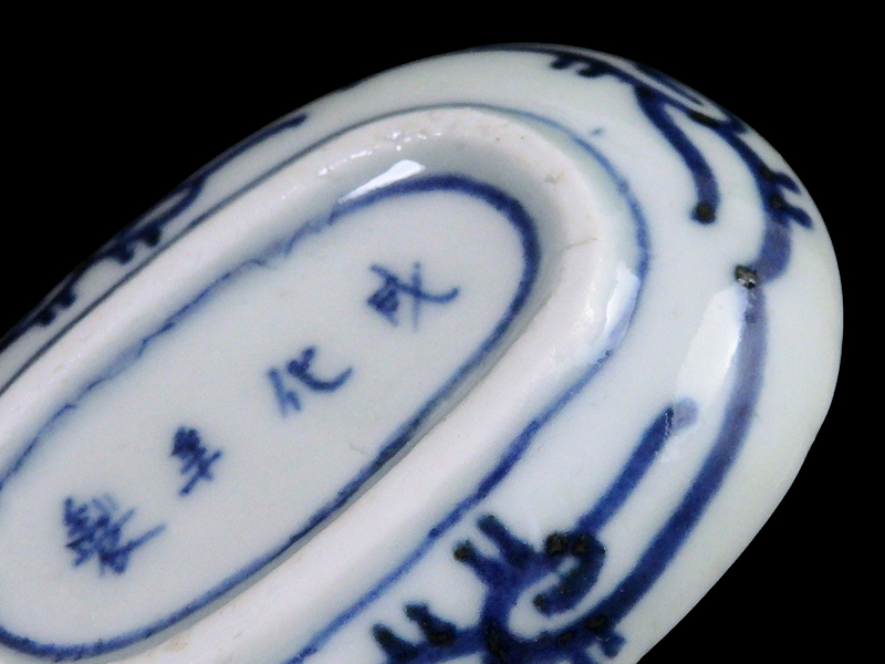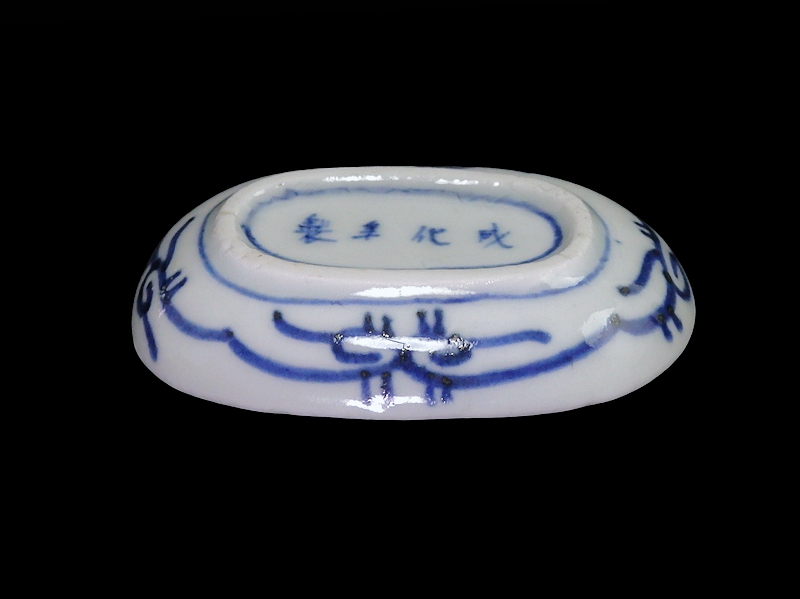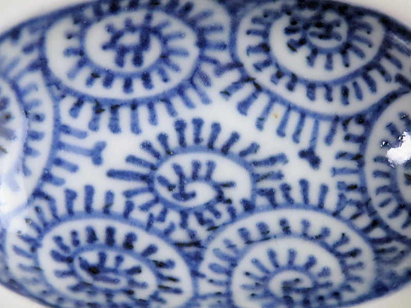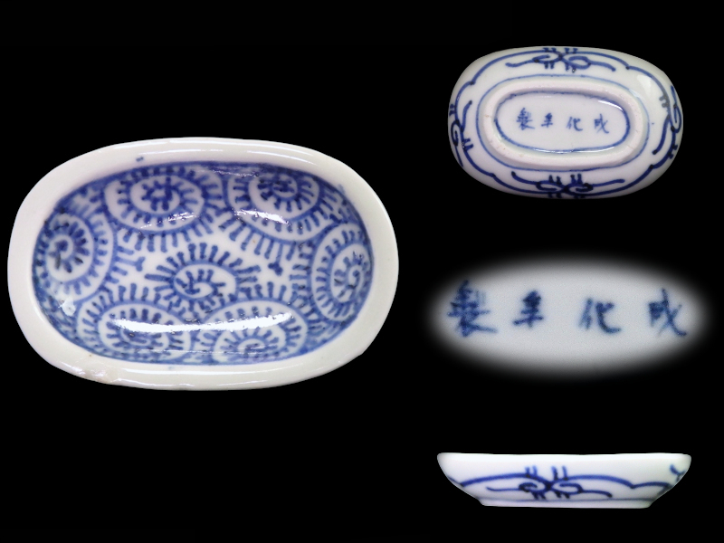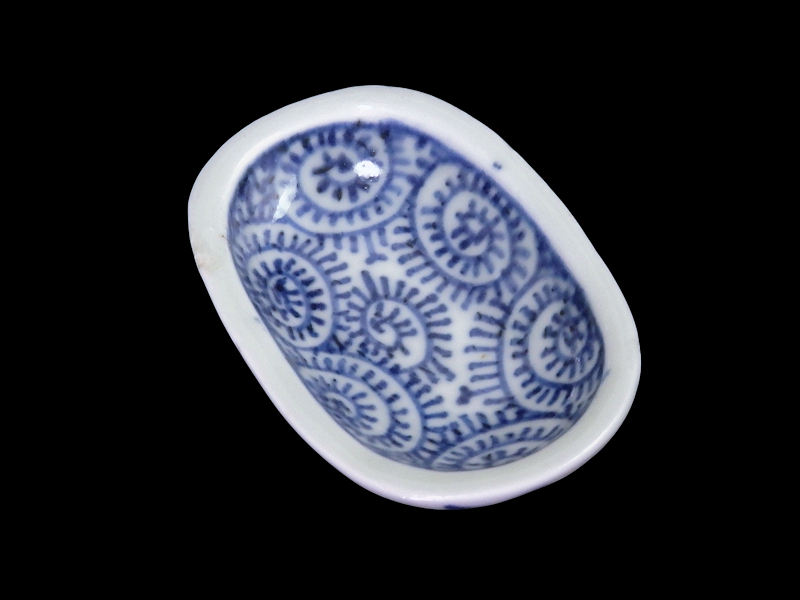 ★華心★ CTw-E498mS 古伊万里 染付 蛸唐草の図 楕円豆皿 珍品
