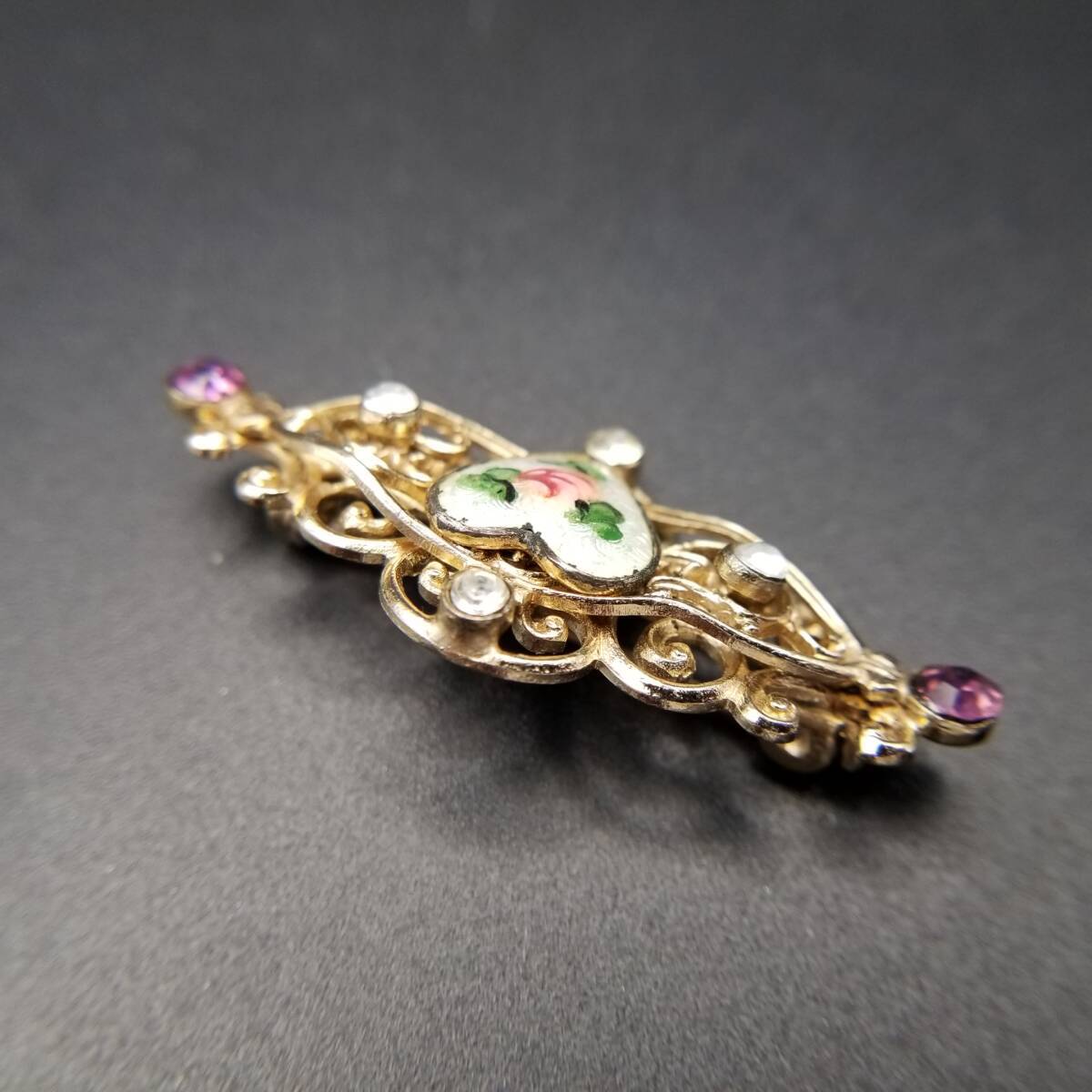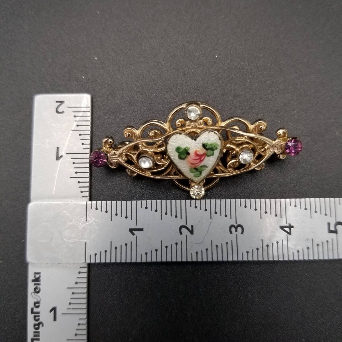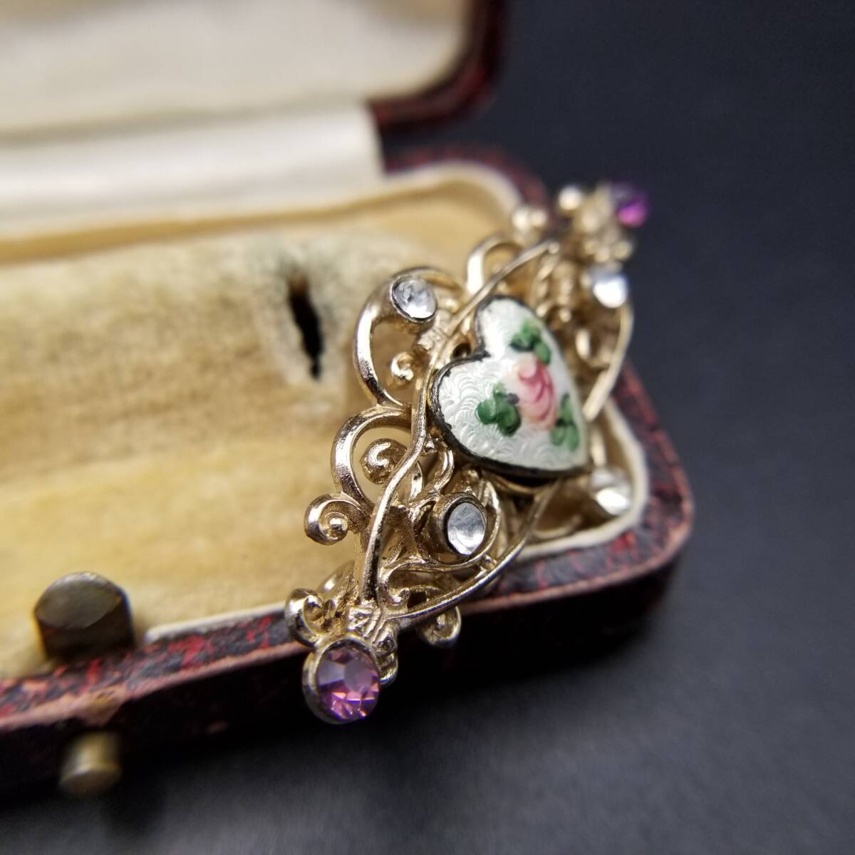 Coro 薔薇のペイント ギロシェ クラシック ハート ヴィンテージ ブローチ ゴールドトーン 透かし エレガント 小ぶり ラペルピン Y20-R