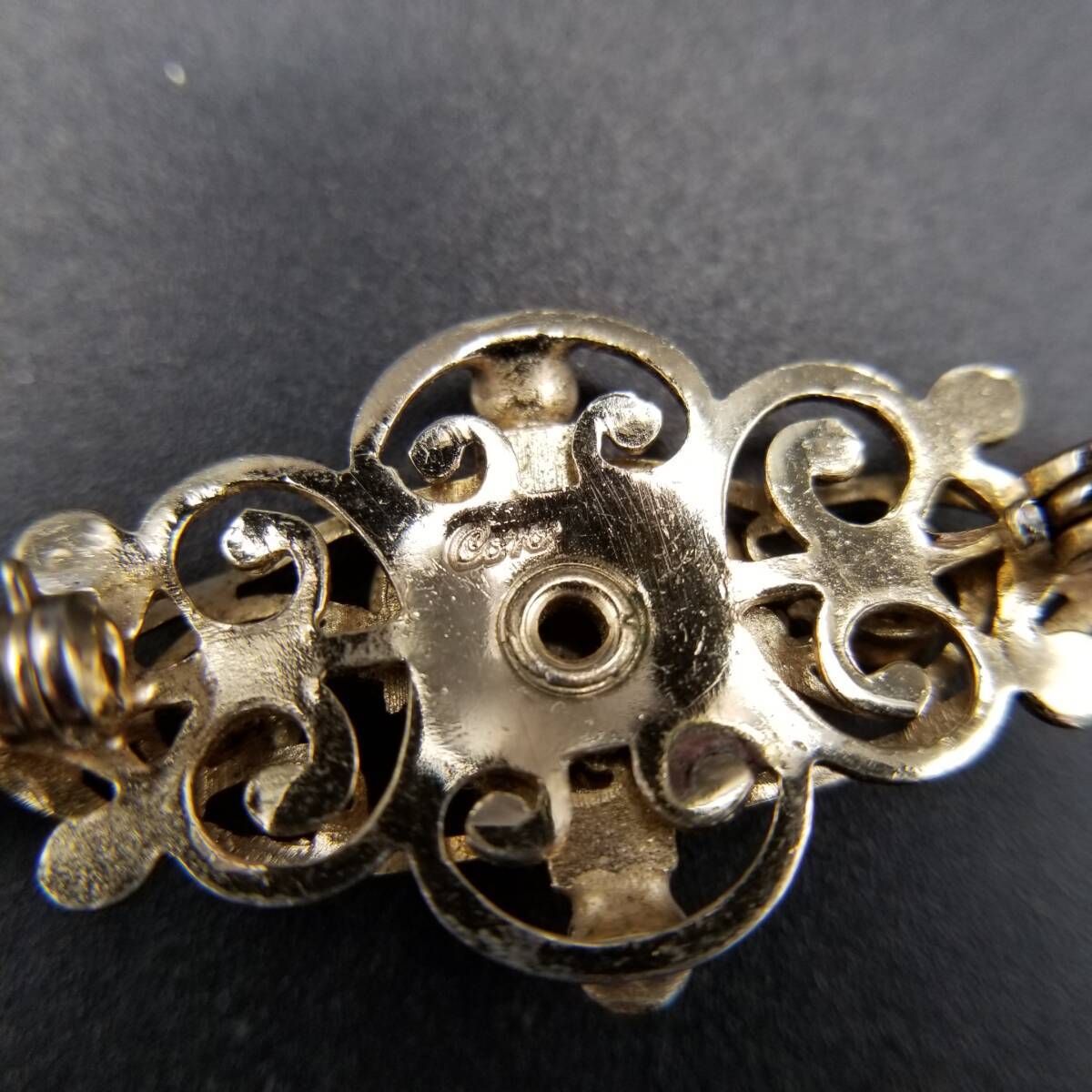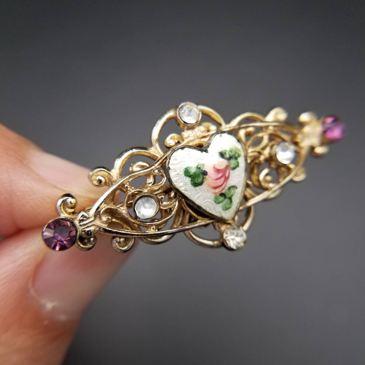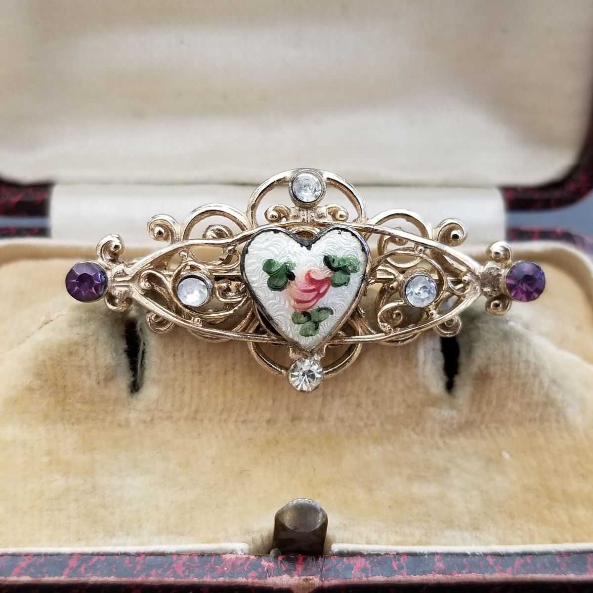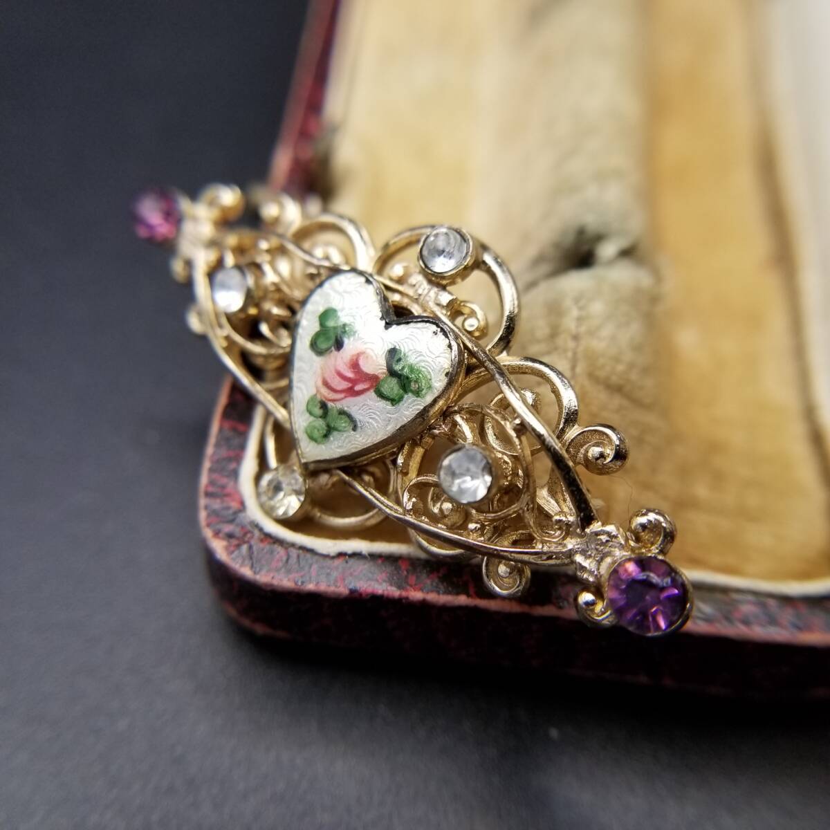 Coro 薔薇のペイント ギロシェ クラシック ハート ヴィンテージ ブローチ ゴールドトーン 透かし エレガント 小ぶり ラペルピン Y20-R
