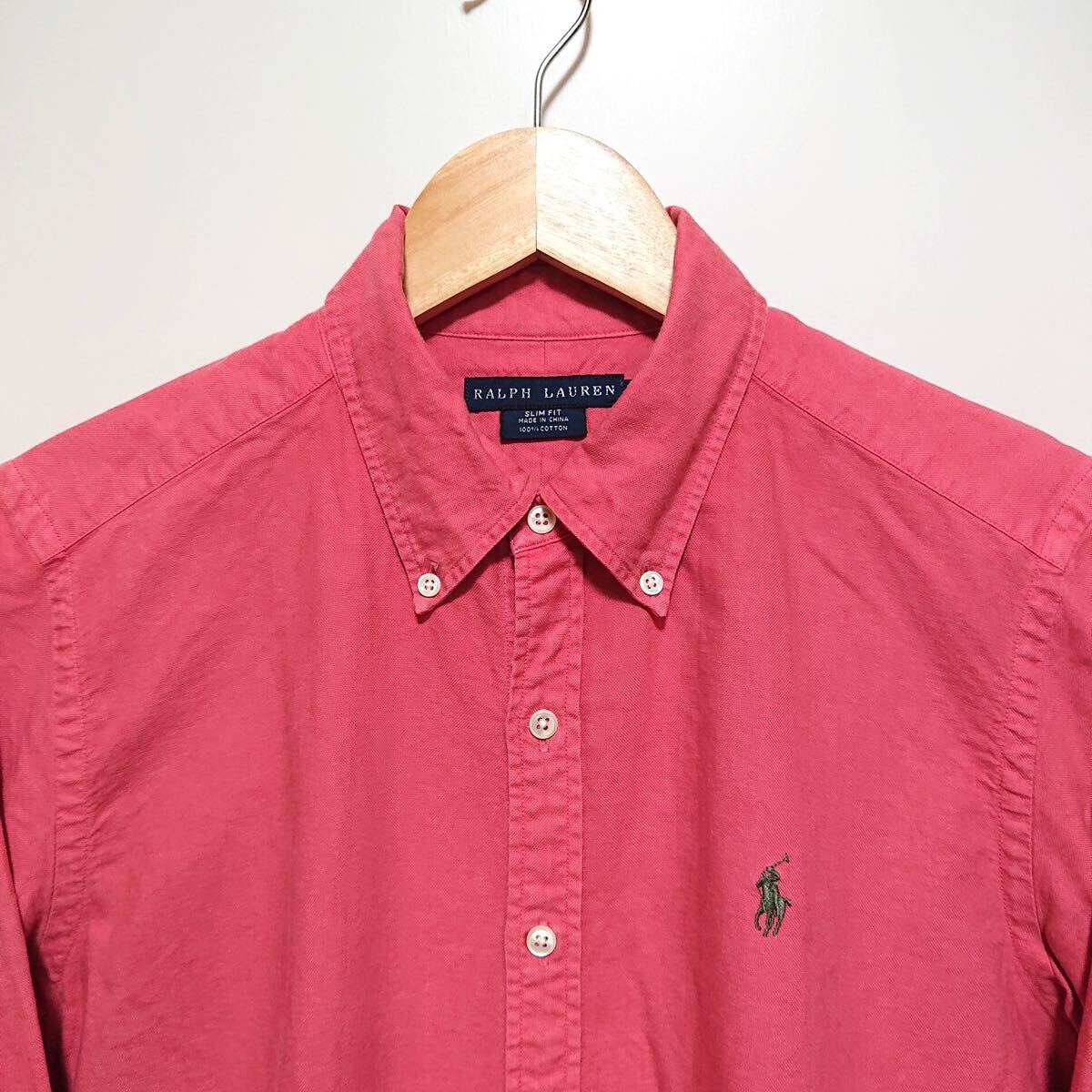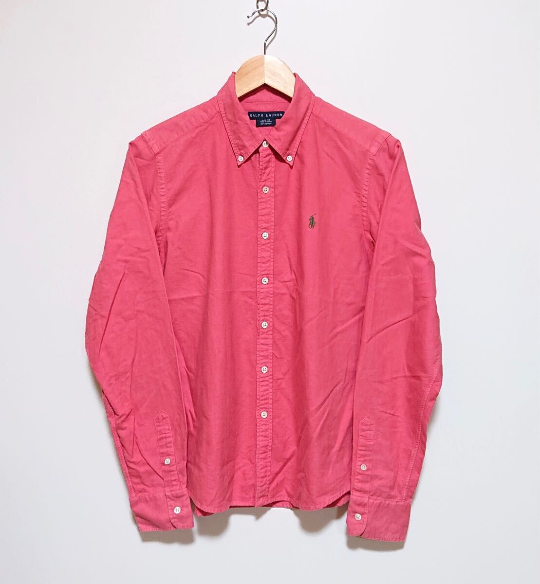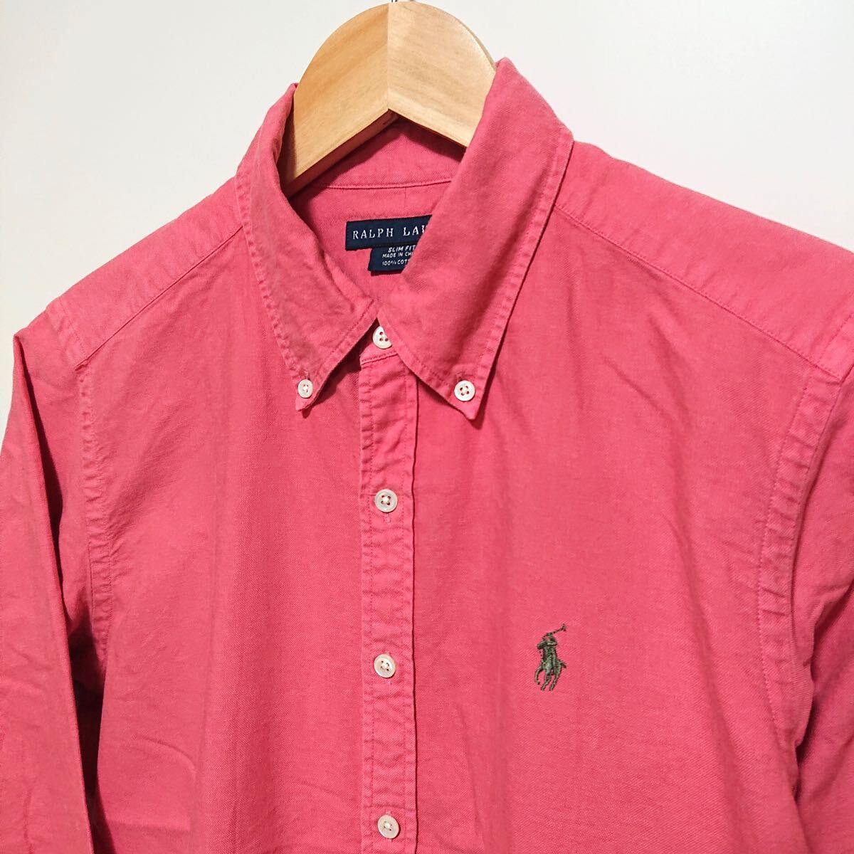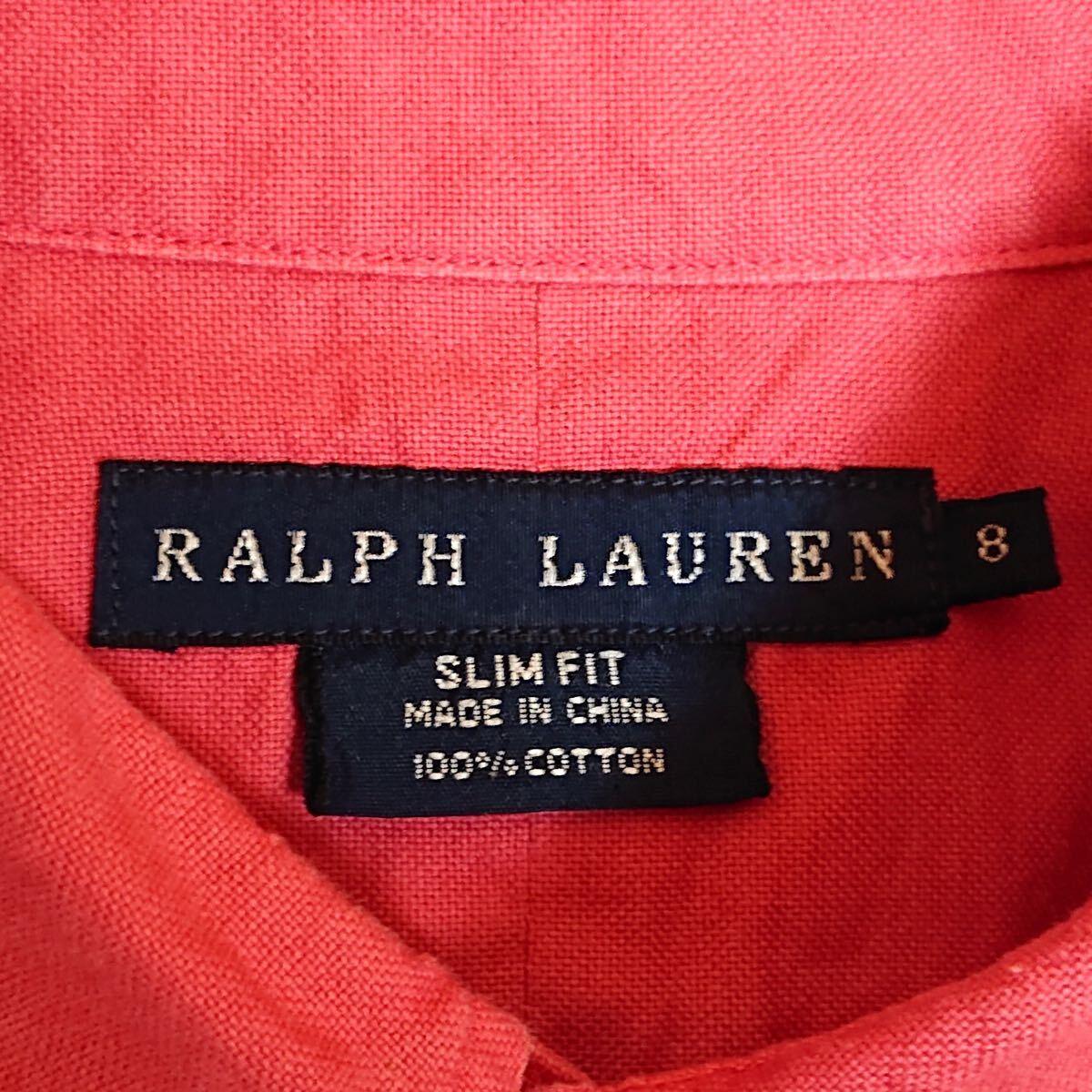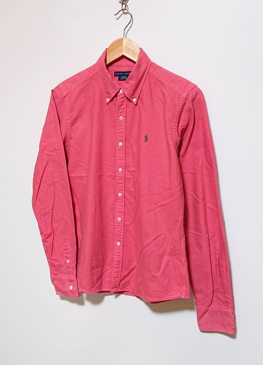 h1104gg POLO RALPH LAUREN|ポロ ラルフ ローレン スリムフィット サイズ8(S位) 長袖シャツ ピンク レディース シンプル コットン100%