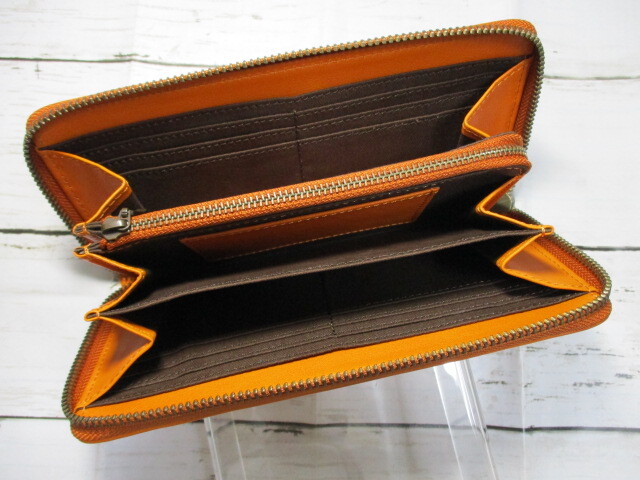 L字ファスナーの小銭入れで大きく開き、多くのポケットやカード入れがあり収納力抜群です。