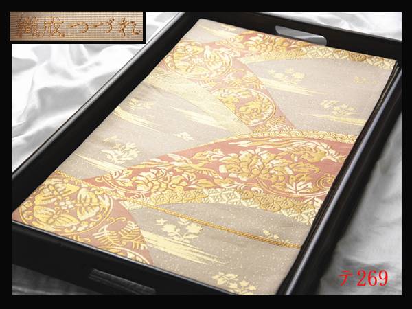 蔵【テ269】西陣逸品 織成つづれ 花鳥古典紋 鳥の子色地 気品豊かに 正絹純金糸六通高級美術袋帯◇検◇簪着物名古屋帯和装小物帯締め