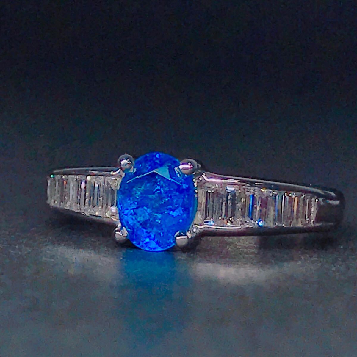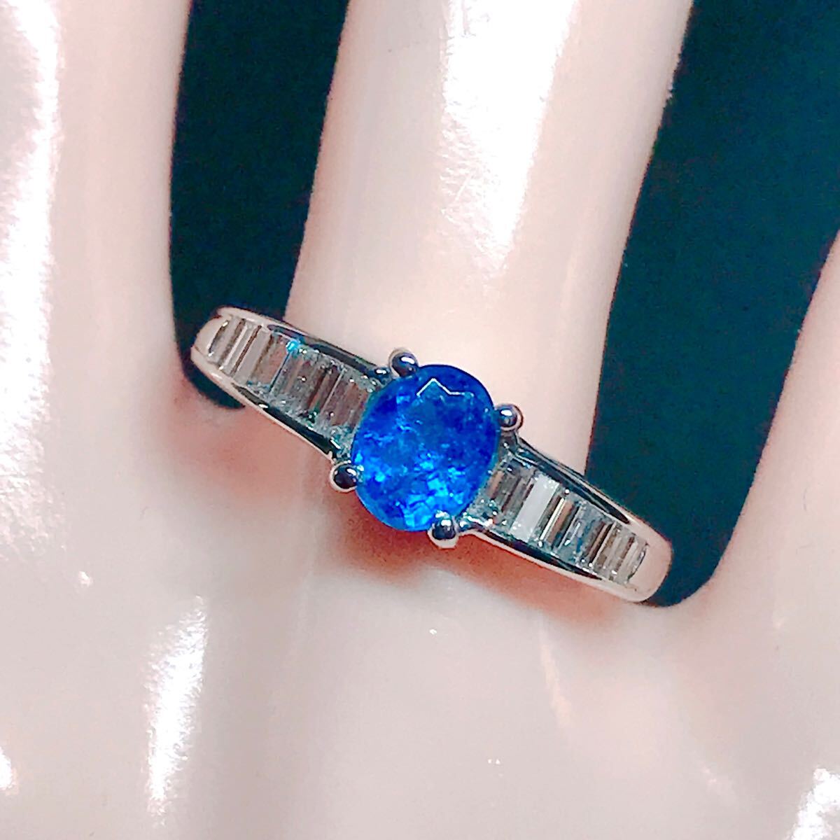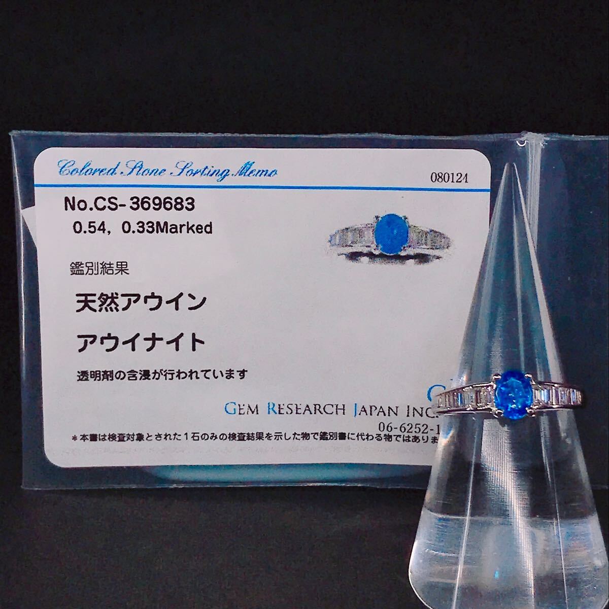コバルトブルーが非常に美しい様々な宝石の中でも極めて希少なアウイナイトをセッティングしたリングです。この宝石では大変珍しい0.5ctアップという超大粒石です。多少の内包物と面キズがございますが、そんなの気にならない位の抜群に色が乗ったフェルメールブルーカラーとなっております。