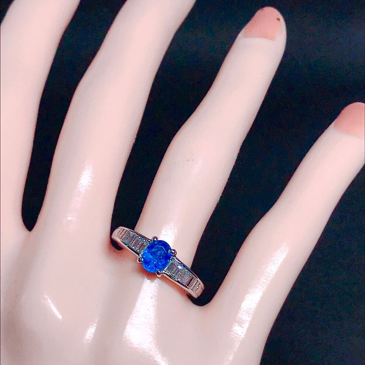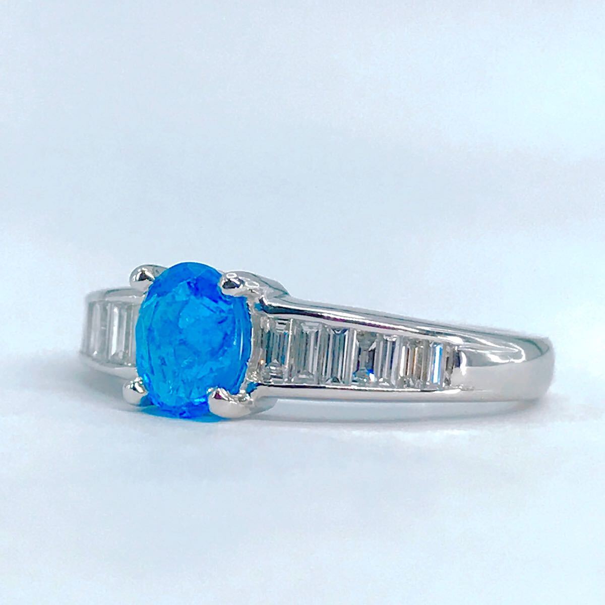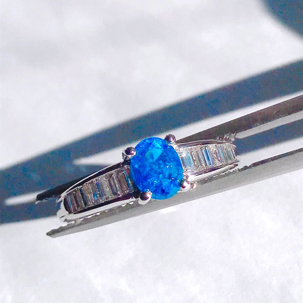 コバルトブルーが非常に美しい様々な宝石の中でも極めて希少なアウイナイトをセッティングしたリングです。この宝石では大変珍しい0.5ctアップという超大粒石です。多少の内包物と面キズがございますが、そんなの気にならない位の抜群に色が乗ったフェルメールブルーカラーとなっております。