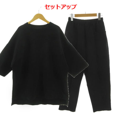 ミカーレミカーレ MICALLE MICALLE ボンディングカットソーパンツ セットアップ 七分袖 ロング丈 テールカット パンツ テーパード 黒