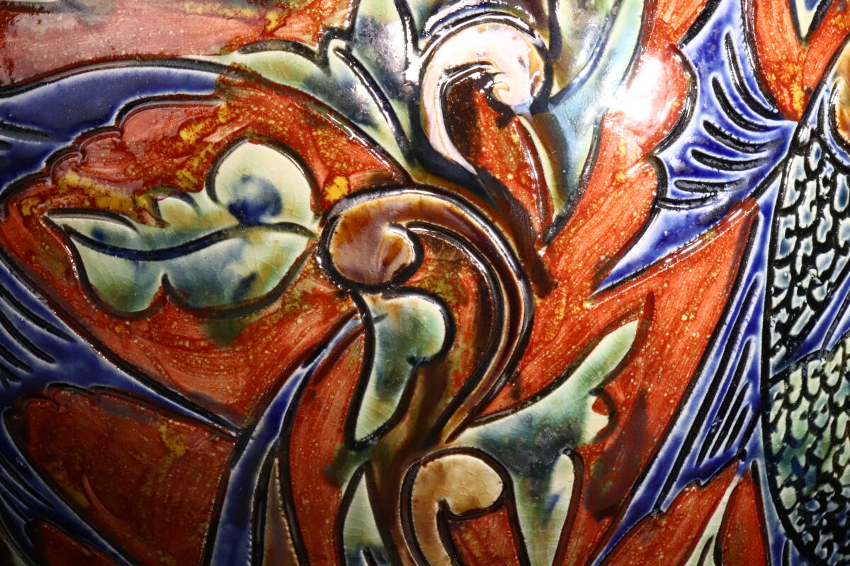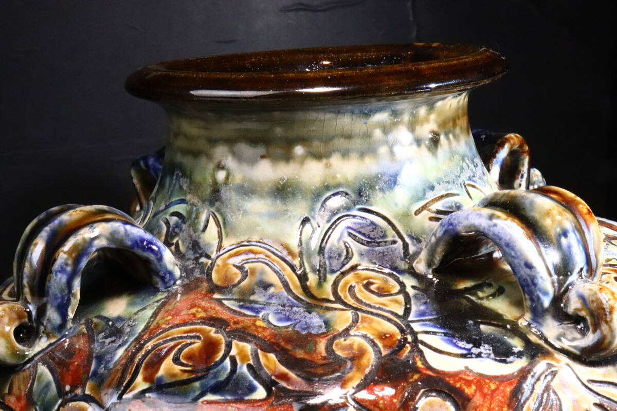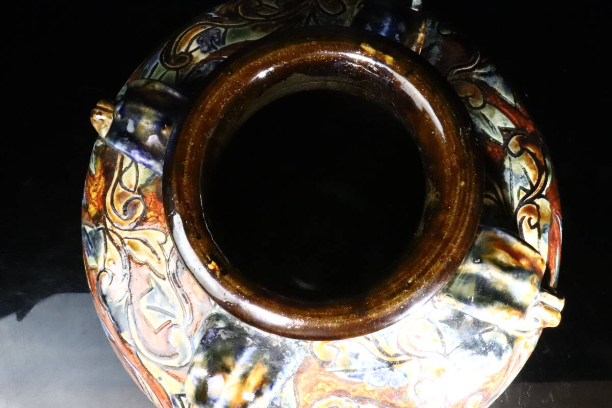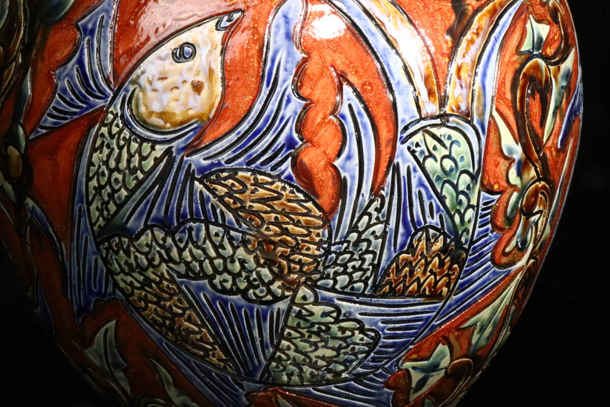 | 品名:赤絵魚紋四耳大壷 作家:新垣 勲 寸法:約 直径 32cm×h 36.2cm 状態:傷など無く綺麗な状態です。 付属:共箱、栞 ★作品説明★残念ながらお亡くなりになられた壺屋の現代の名工新垣勲さんの滅多と無い最上級手と言っても過言ではない名品の大壷です!迫力ある造形に色鮮やかに削り出された魚紋が作品全体を埋め尽くす!作品全体が見どころの逸品です!! どうぞ宜しくお願い致します。 また、他でも販売しておりますので終了する場合があります。 ★(入札がない場合にのみです。)ご興味のあるものはお早めにお願い致します。 数あるオークションの中からご覧頂き有難う御座います。 以前にオークションをさせてもらっておりました(評価実績1800ほど) 不慣れな点は多々あると思いますがお客様を一人でも多く、笑顔で喜んで頂けるよう 努力してまいります。どうぞ宜しくお願い致します。 ※ご入札前に必ず御読み下さい!! ・作品の状態などは画像にて判断をお願い致します。 ・ご利用のモニターにより多少 色彩などの違いは生じます。 ・基本的に古物ですので、新品の様な状態を希望の場合はご入札をご遠慮下さい。 ・新規のID、悪い評価の多いIDのご入札は事前に質問等よりご連絡ください。 ご連絡無き入札の場合入札者の取り消しをさせて頂きます。 (評価の非常に悪いの内容にても判断致します) ・基本的にノークレーム・ノーリターンでお願い致しますが説明に無い傷等あれば返品に応じま すのでご連絡下さい。 ・落札後24時間以内にお取引開始をお願い致します。お取引開始が無い場合はご連絡をさせて頂 きますが、それでも返答がない場合は取り消し処分とさせて頂きます。お取引開始後、3日以 内のご入金をお願い致します。こちらもご入金がない場合は取り消しとさせて頂きます。以上 の厳守頂けなかった場合はブラックリストへ登録し以後お取引は行いません。(入札し、以後 ご連絡の無い無責任な代行業者の方が多いためです!) ・作品を受け取りになったら、すぐにヤフオクより受け取りのご連絡をお願い致します!!! かんたん決済のシステム上、ご連絡がないと代金の受け取りが出来ないためです。 ★以上の事を厳守できる方のみ!ご参加お願い致します。★ また古美術hiroではインスタグラムも掲載しておりますので、宜しければフォローの方 宜しくお願い致します。ID:kobijyutsu_hiro ★出品作品はお値引き可能な作品も御座います、作品の状態など どんな事でもお気軽にご質問下さい。インスタグラムへDMをして頂いても結構です。 どうぞ宜しくお願い致します。 | |||