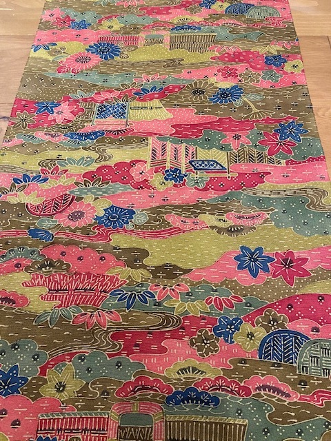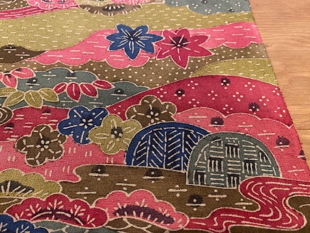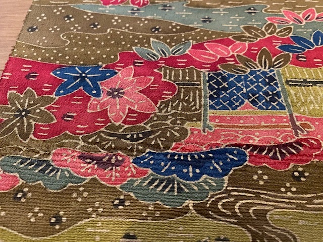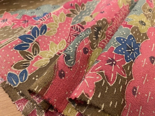 【値下げ】★和布★古布 正絹縮緬地 着物 ハギレ(紅型風の柄)162㎝ 着物 和柄