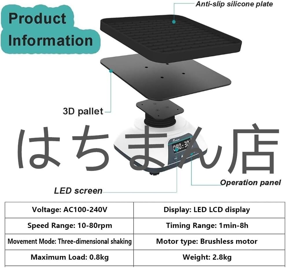 デジタルオービタルシェーカー、3Dパレットシェーカーオシレーター、調整可能な速度10-80 RPM、10°の傾斜角、ペトリ皿ビーカーフラスコ用