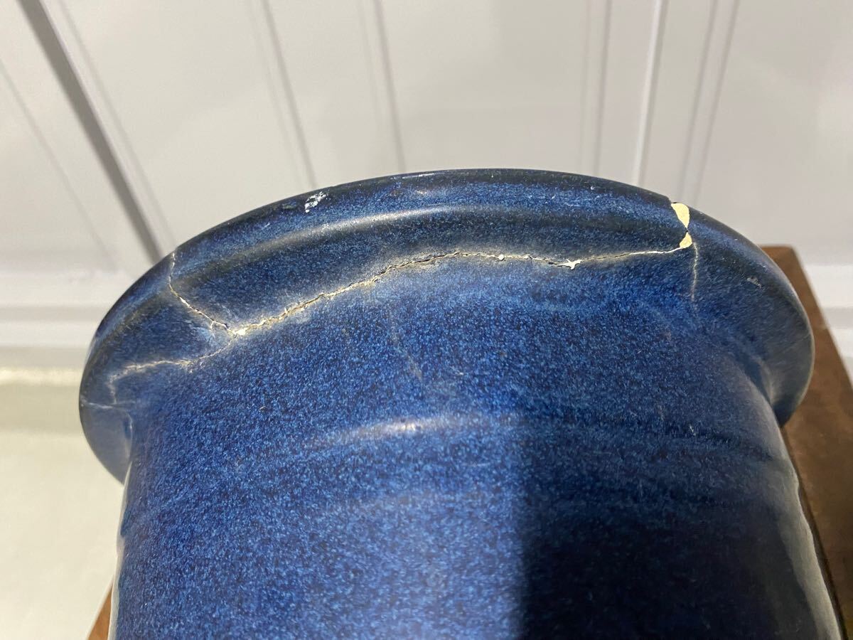 欠け傷やひび割れ傷、窯傷があり接着剤で補修したあともあります。屋外で保管していたので水あかや土汚れなどがあります。詳しくは画像をご確認ください。