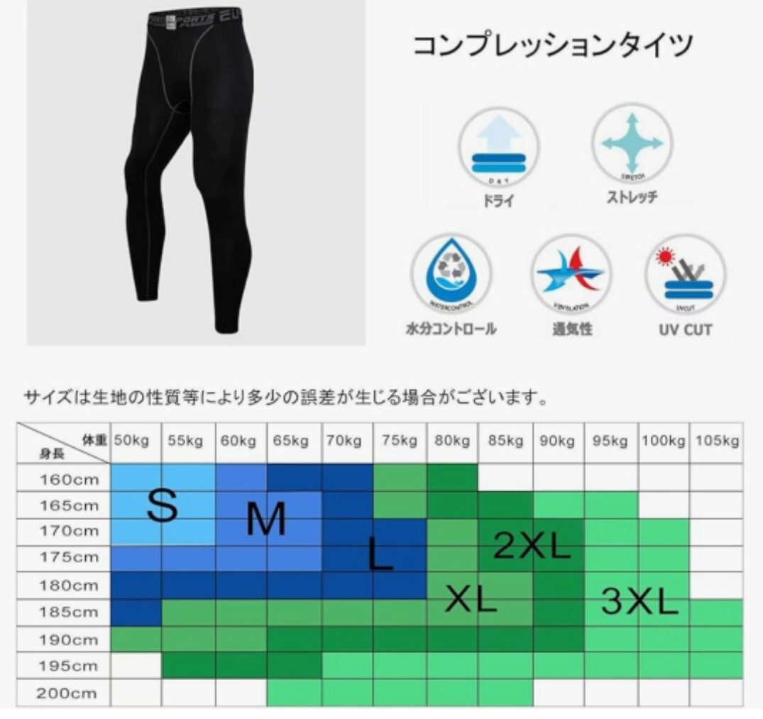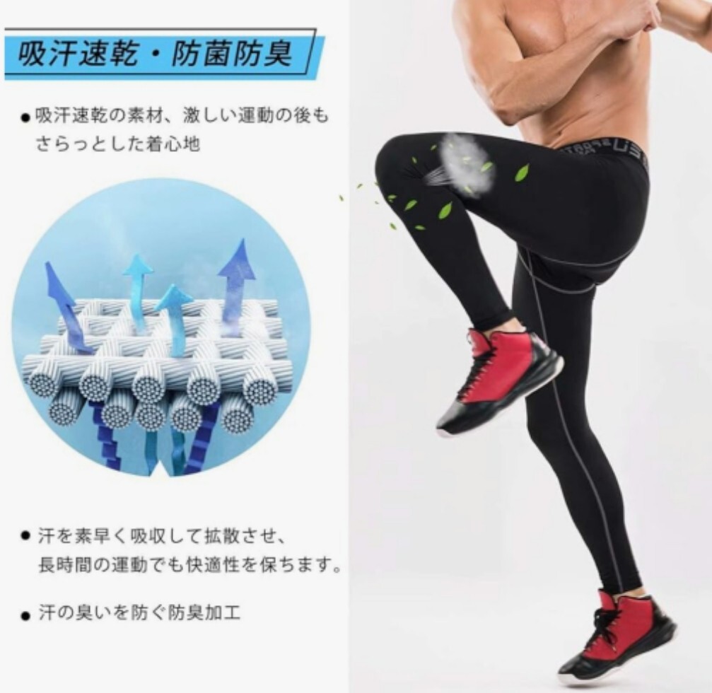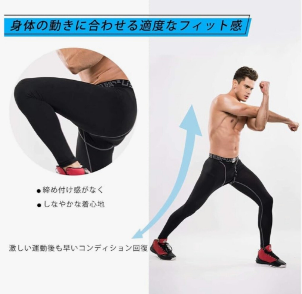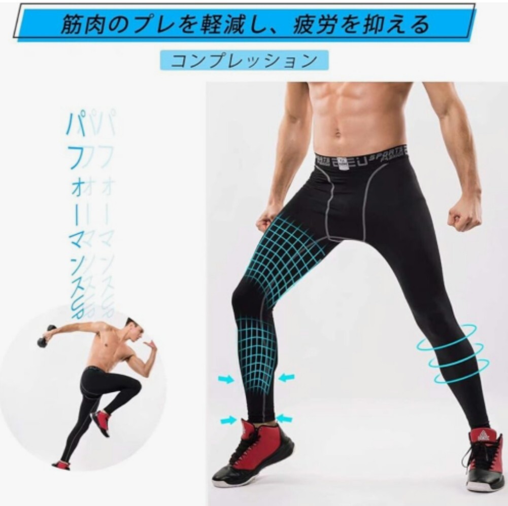 スポーツタイツ メンズ コンプレッション ロング タイツ 2点セット パワーストレッチ レギンス アンダー [UVカット・吸汗速乾] ブラック M