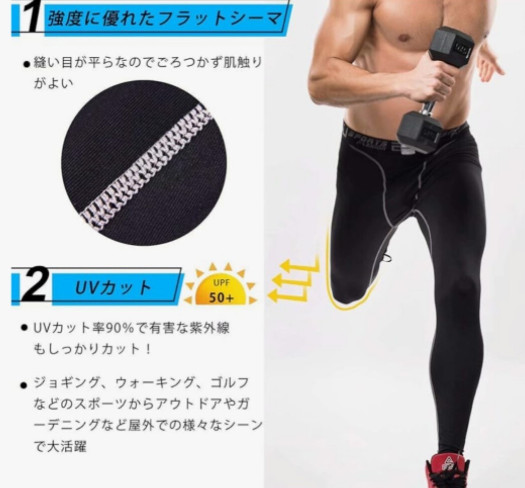 【動きやすい】4方向ストレッチ素材を採用し、高い伸縮性で、フィット感を保ちつつ体の動きを邪魔しません。どの様なスポーツのシーンにもぴったりです。適度に体を包み込んで筋肉をサポートすることで、筋肉の余計なプレを軽減し、疲労を抑える効果が期待出来ます。