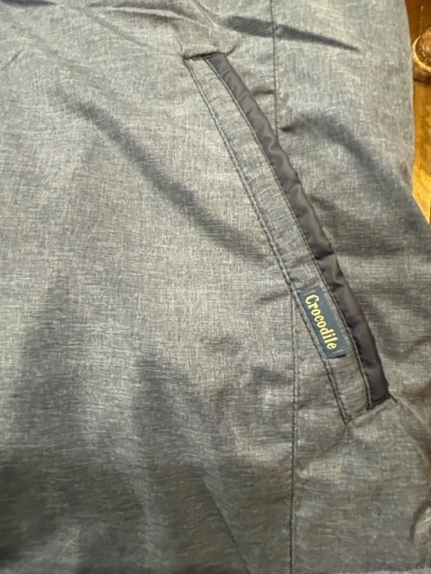 ライトグレーの面は左胸にクロコダイルのマーク、ブルーの面は左ポケットにタグのみでシンプルになっております。