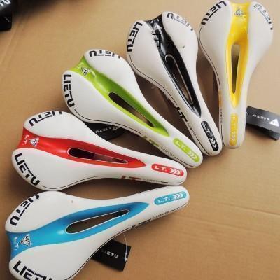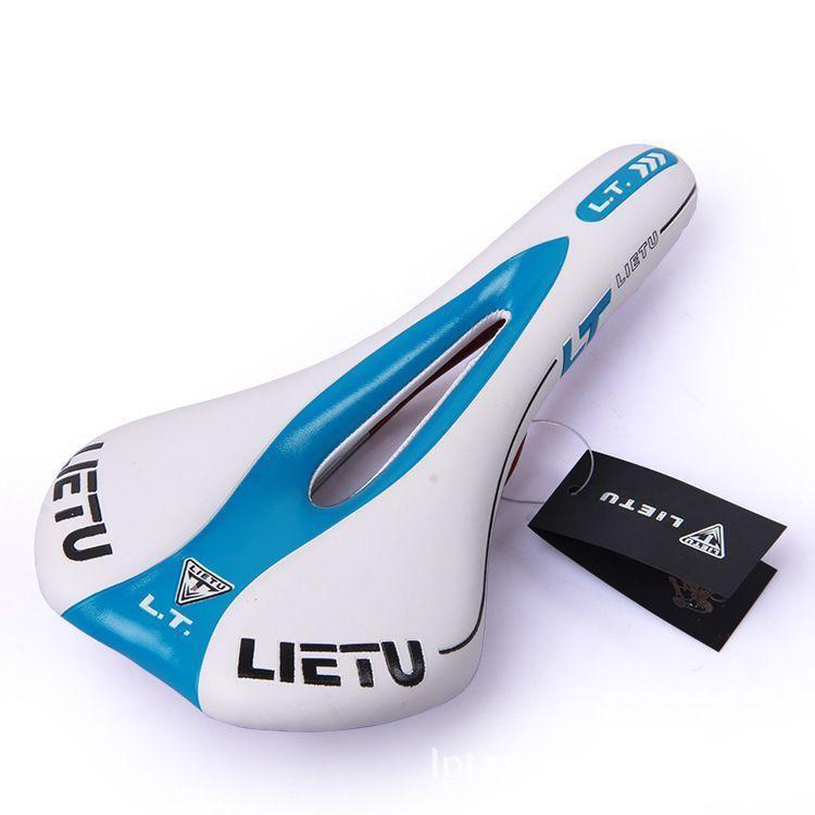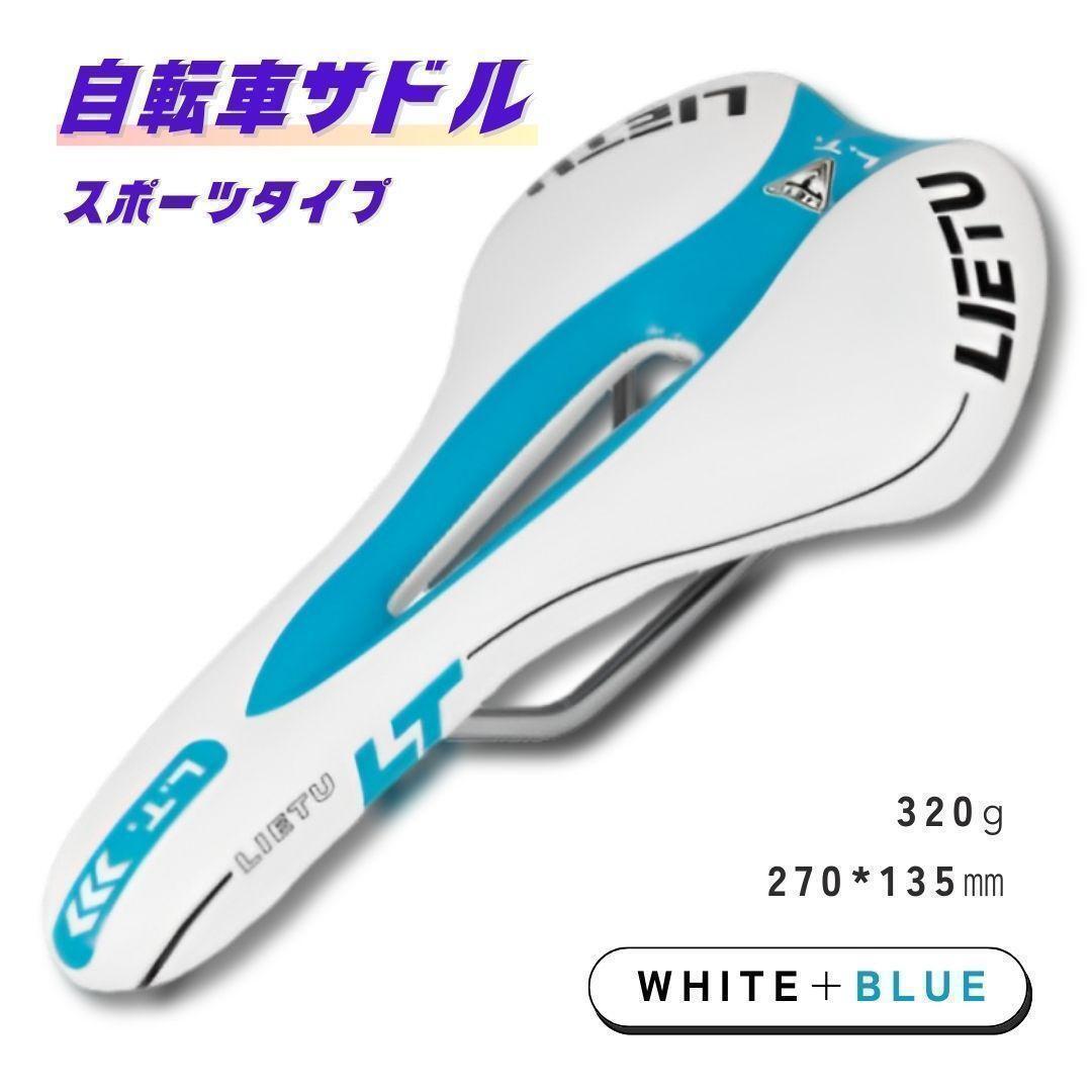 サドル 自転車 スポーツバイク仕様 薄型 ロードバイク クロス ホワイト青ライン (1052)