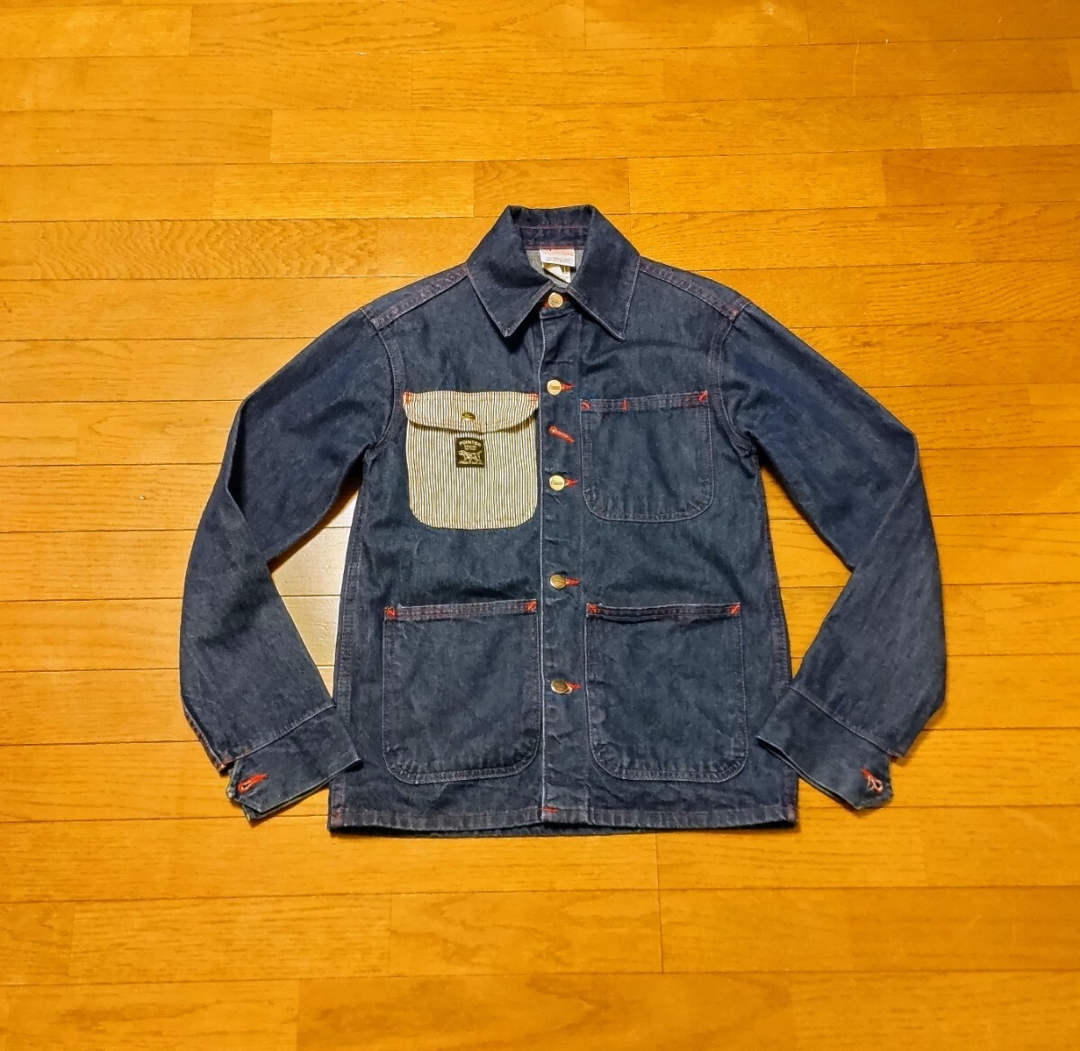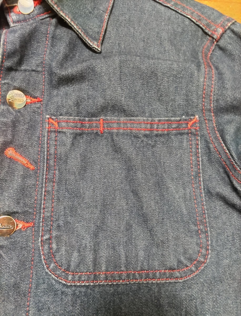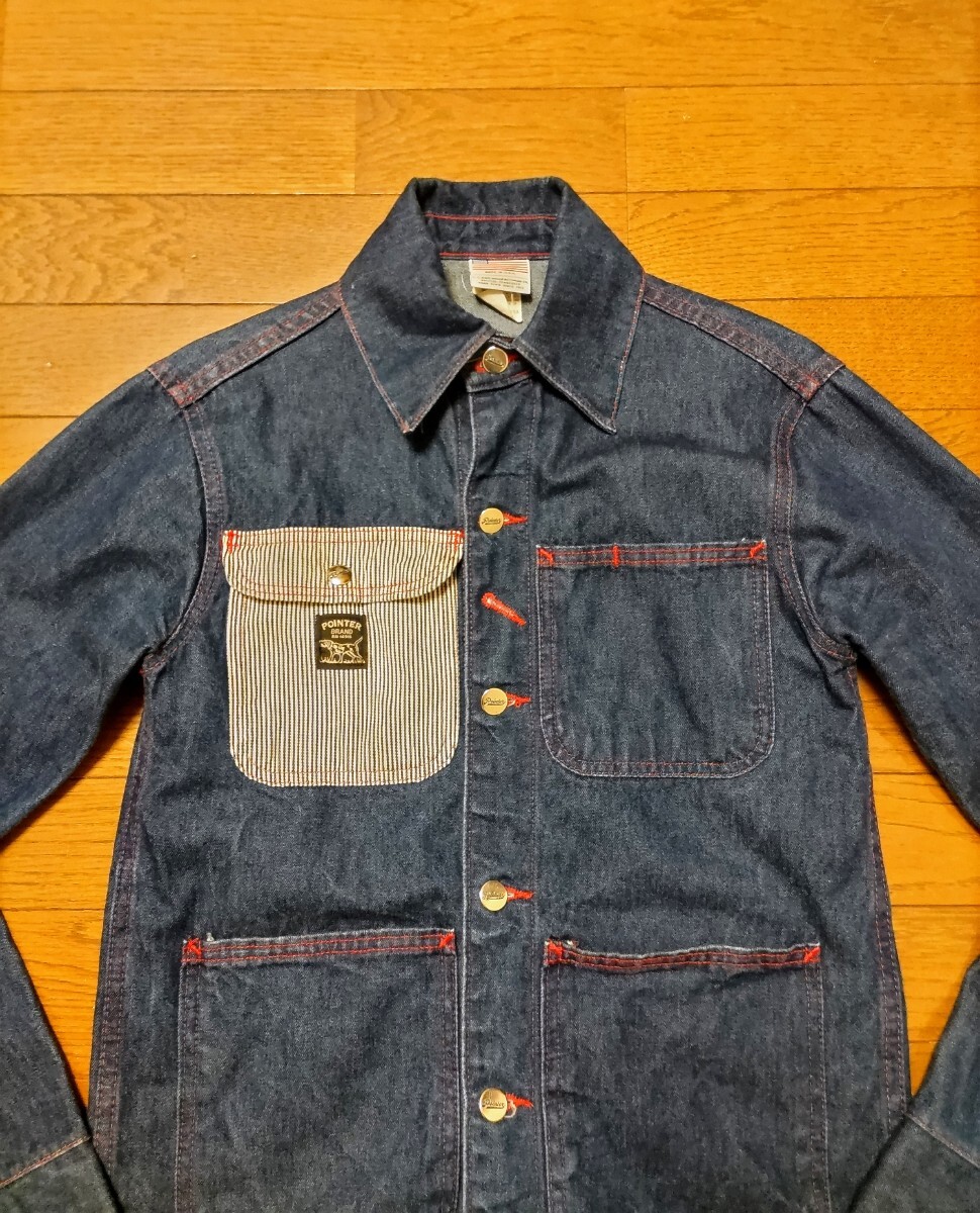 ポケットにヒッコリー素材を使用しておりデザインがとてもかっこいいです。縫製に赤い糸を使っており他のブランドにないデザインだと思います。