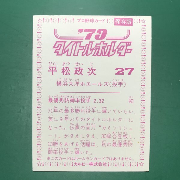 1979年 カルビー 79年 タイトルホルダー 大洋 平松 ※裏面:このカードはホームランカードではありません。表記あり -AJG5