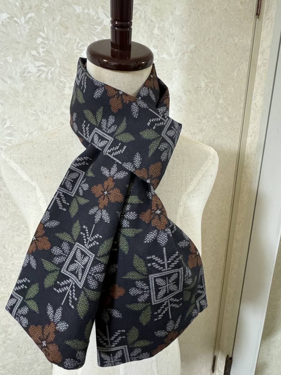 17×152cm 正絹 紬 / マフラー シルク 絹 / ハンドメイド リメイク 反物から作りました / 着物