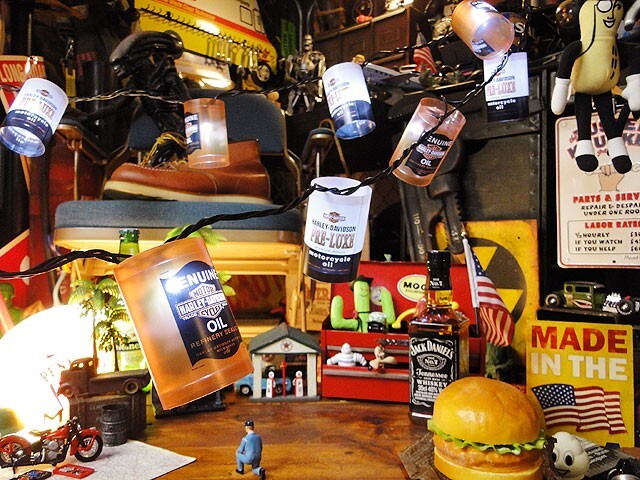 ハーレーダビッドソンのオイル缶型10連パーティーライトです。