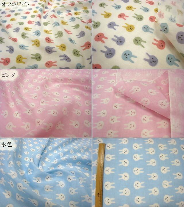 長さ50cm 品切れ色あり Wガーゼ アニマル ウサギ ダブルガーゼ うさぎ 兎 ラビット 生地