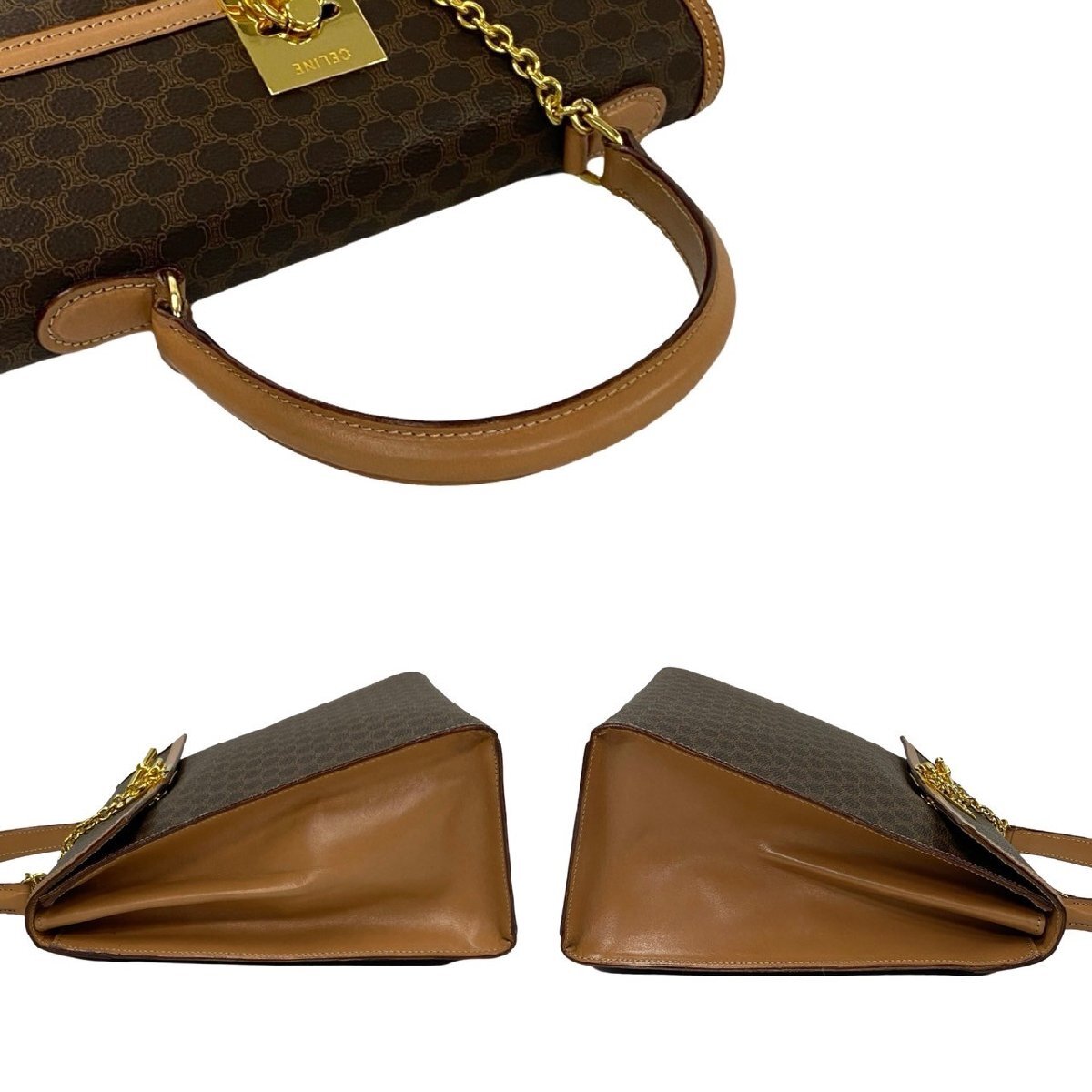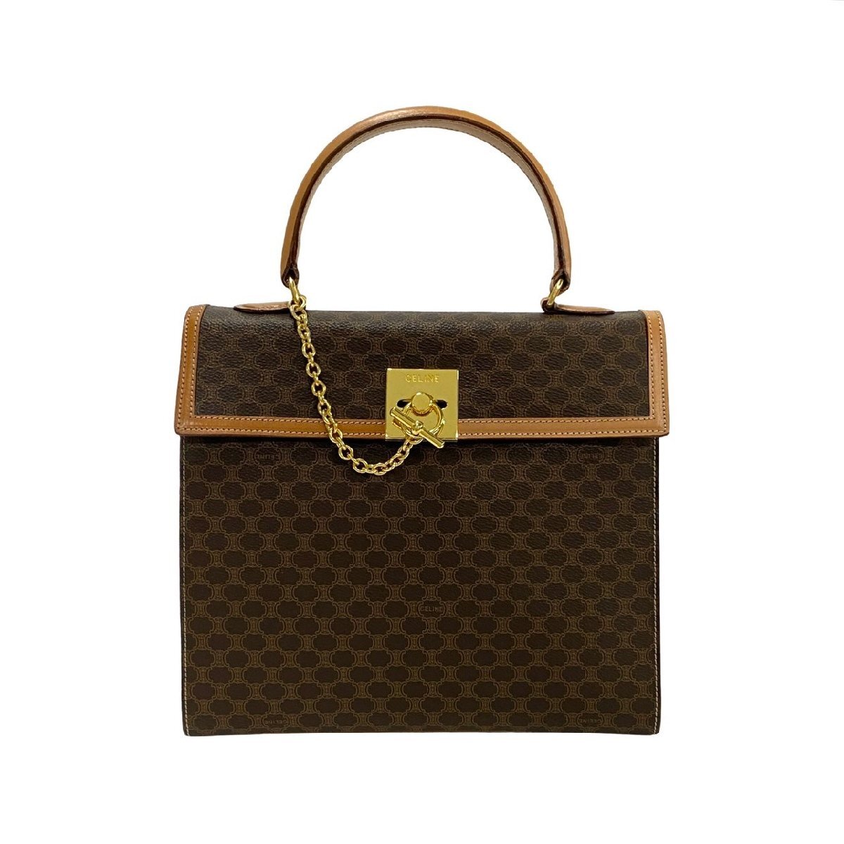 ほぼ未使用 袋付 CELINE セリーヌ マカダム ブラゾン トリオンフ 柄 ロゴ リング金具 レザー ハンドバッグ ミニ トートバッグ 茶 328-8