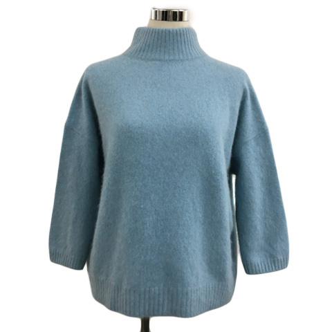 未使用品 ジェットセットソロプラス セーター ニット プルオーバー ハイネック ウール 無地 長袖 F 水色 ライトブルー レディース