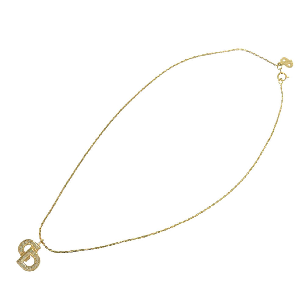美品 クリスチャンディオール ロゴ ラインストーン GP ゴールド ネックレス 0412 Christian Dior