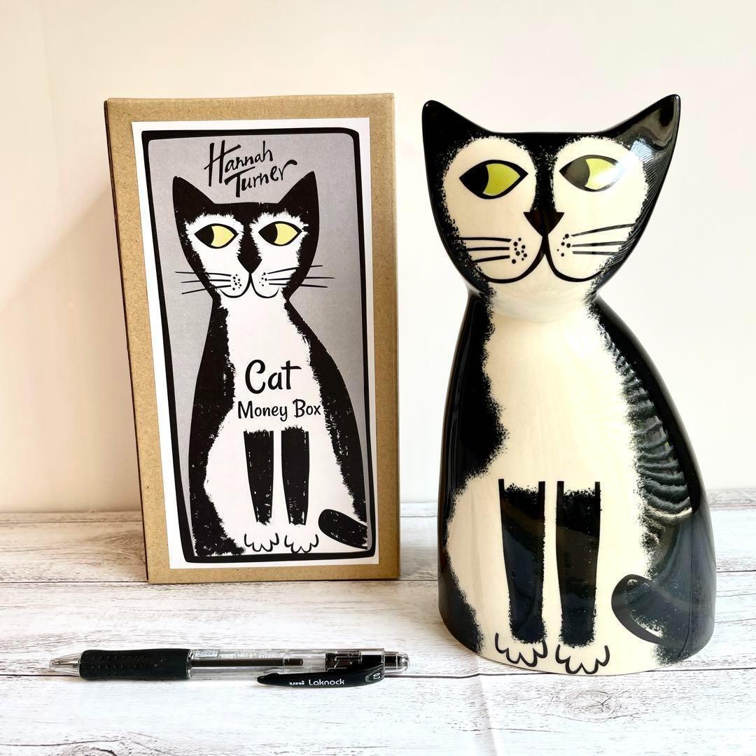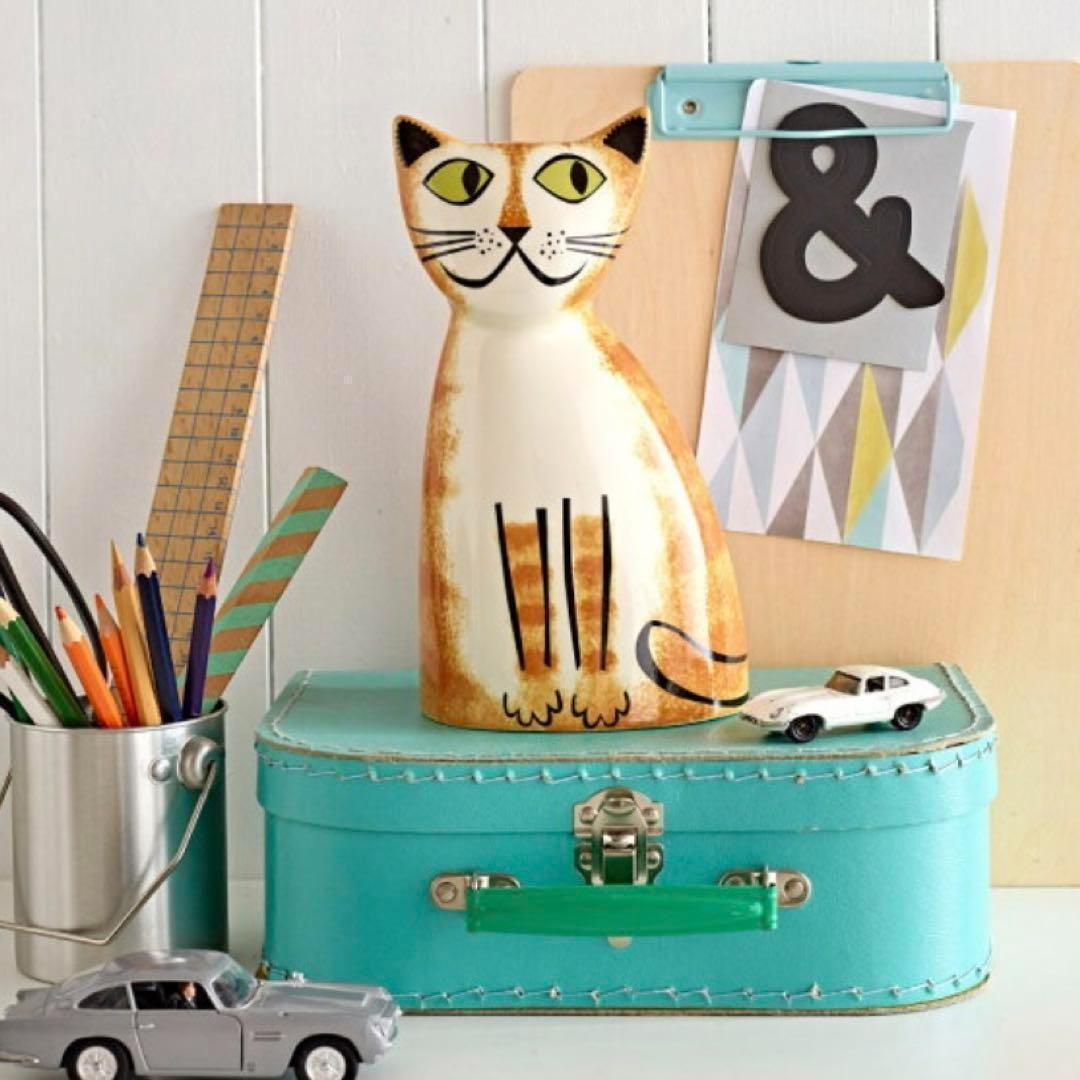 ハンナターナーの鮮やかなネコ型の貯金箱です。陶器製でしっかり作られており、デザインもめちゃくちゃ可愛らしいですよね♪