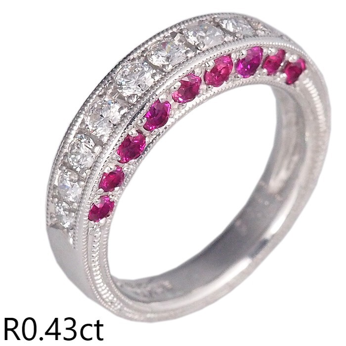 詳細:ノーブランド ルビー/0.43ct ダイヤ/0.89ct K18WG デザイン リング 11.5号 鑑別カード付き 仕上済