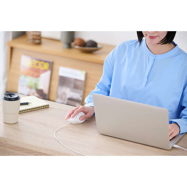 | ●クリック音が静かなため、ミーティング中やリビング・カフェ、シェアオフィスなど 周りに人がいる場面でも音を気にせず使えます | |