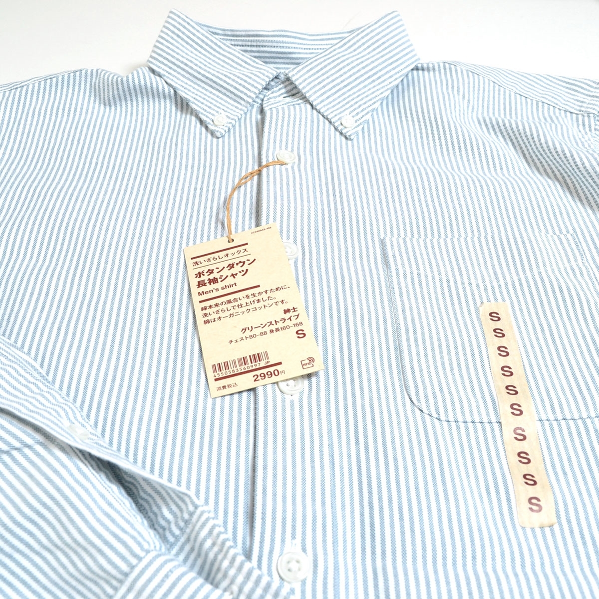 〇527477 未使用品 MUJI 無印良品 良品計画 ○ボタンダウンシャツ ストライプオックスフォードシャツ 長袖 サイズS メンズ ライトブルー